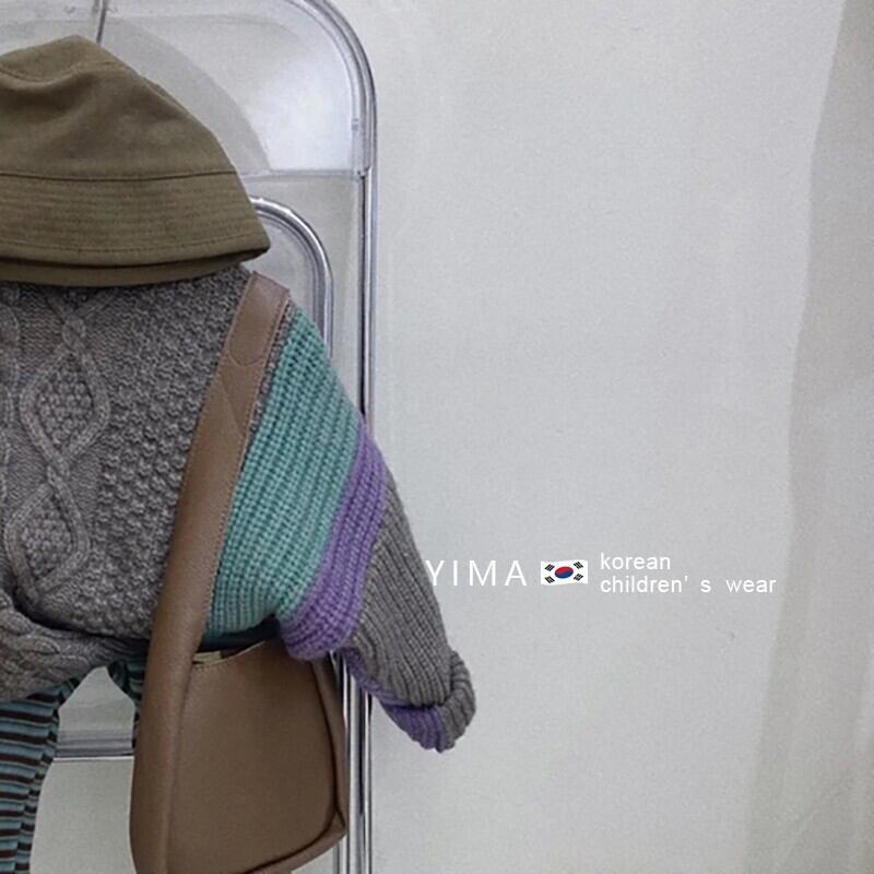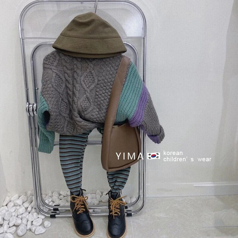 色:ブラウンカラーブロックセーター,ストライプレギンス