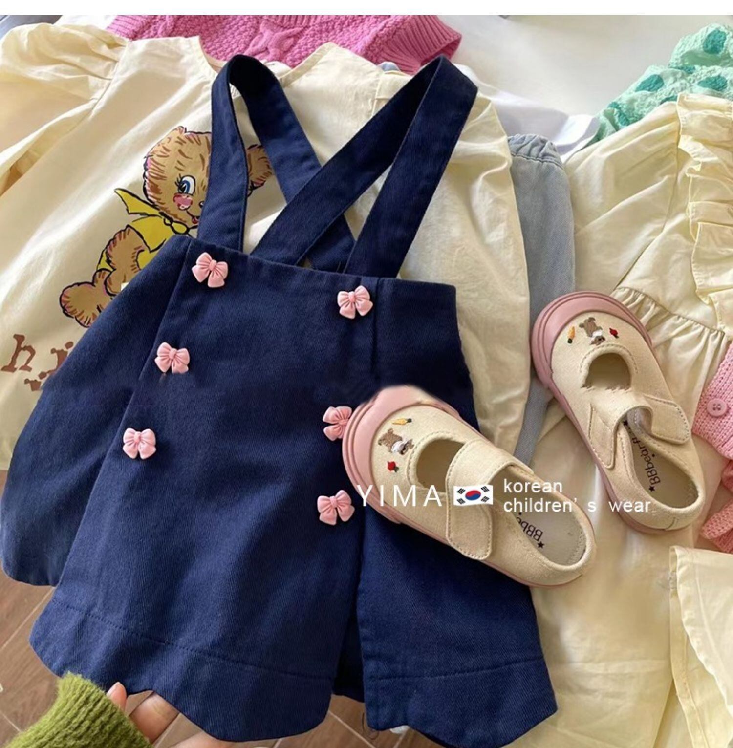 色:ベージュベアトップ,ブルーストラップスカート
