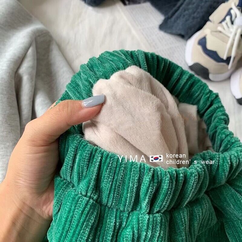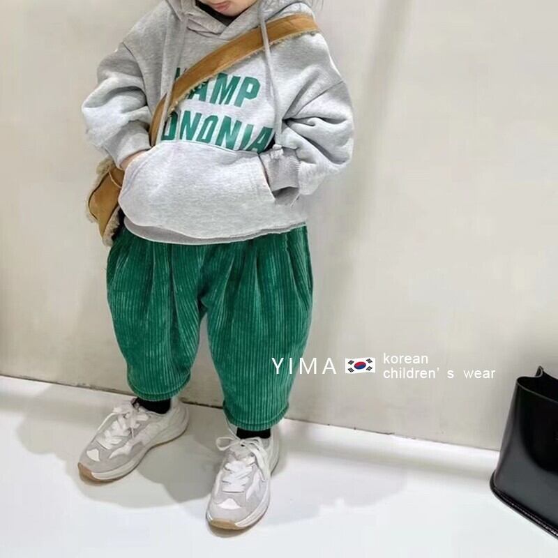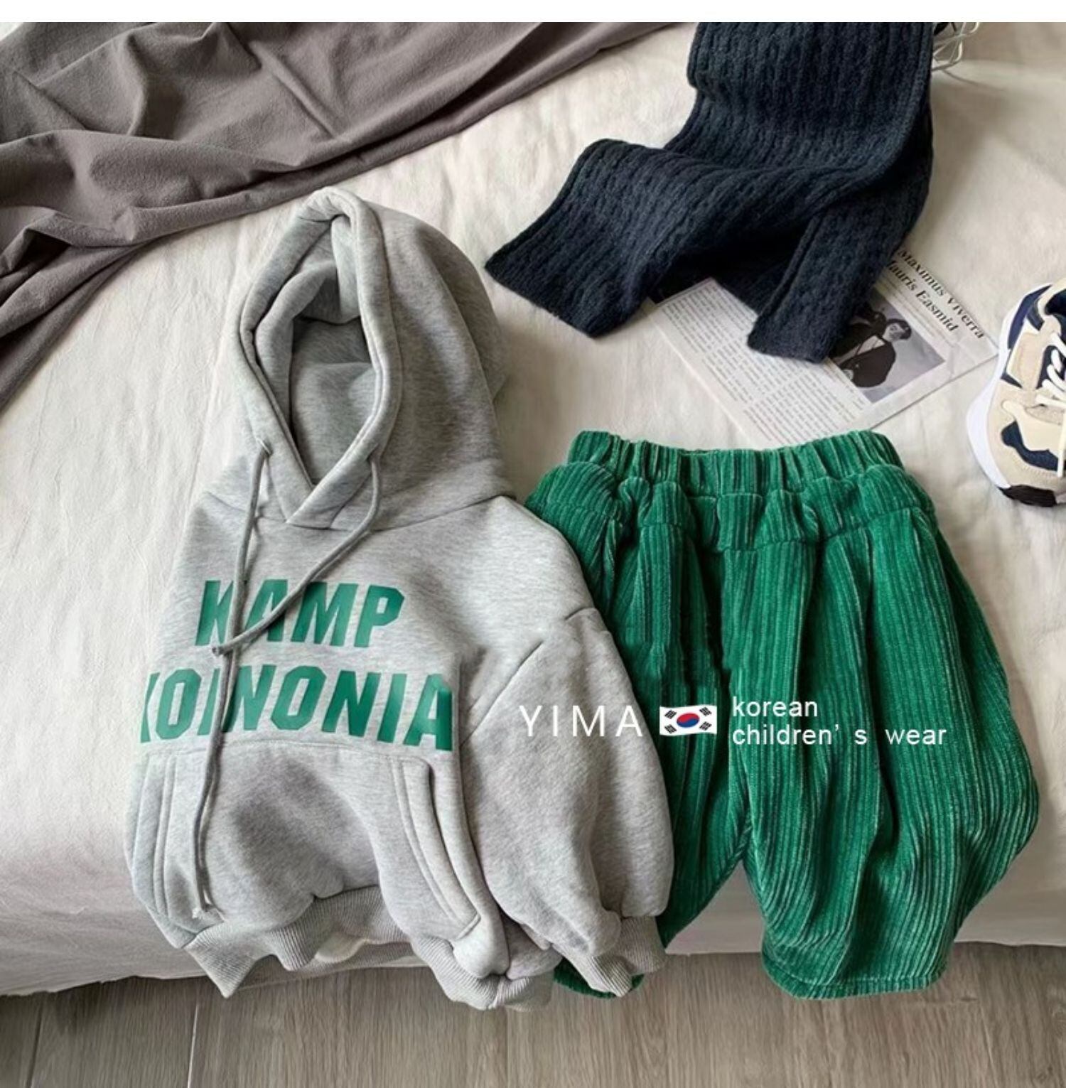 色:グレーのセーター,グリーンパンツ