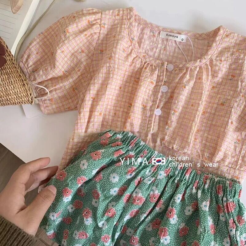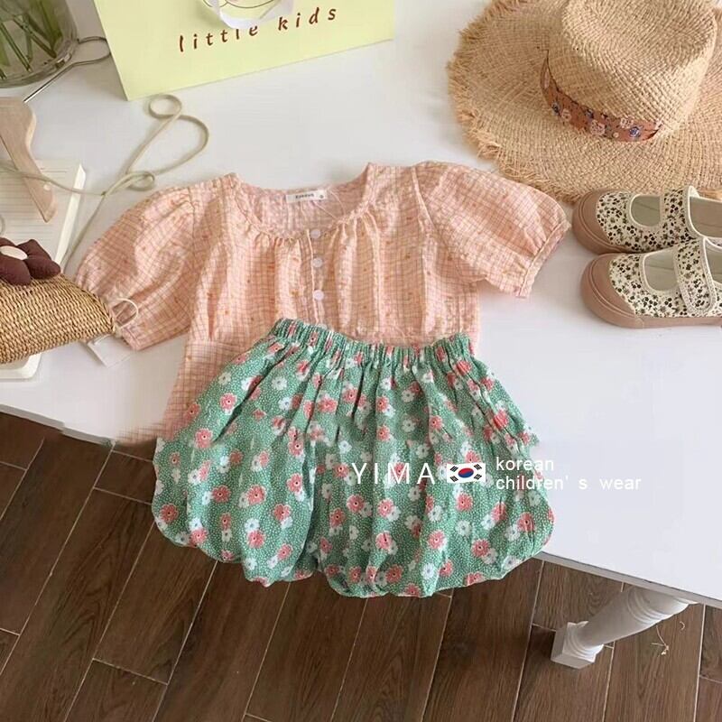色:ピンクトップ,グリーンショートパンツ