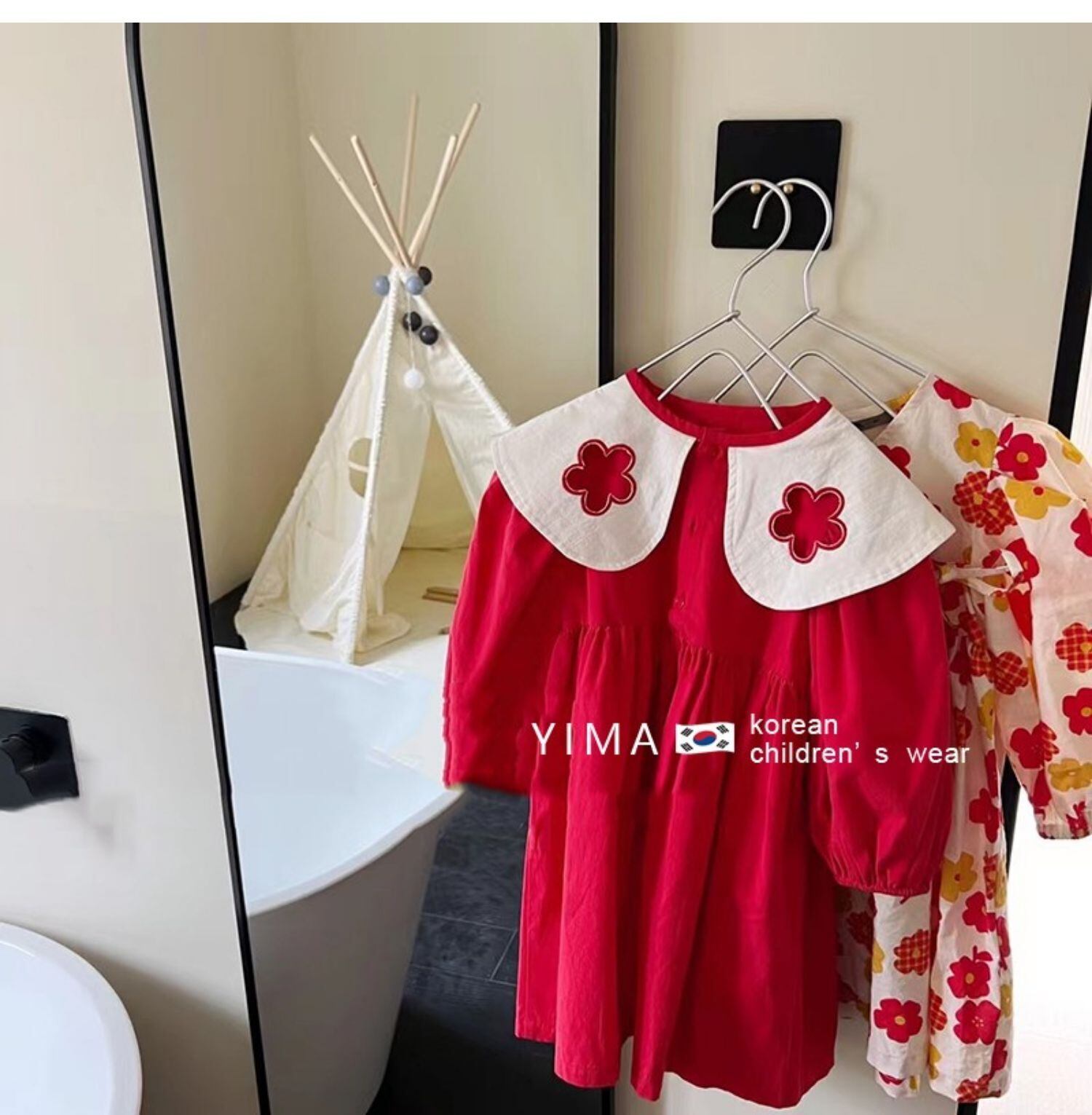 色:赤いドレス,青い服,白いセーターカーディガン
