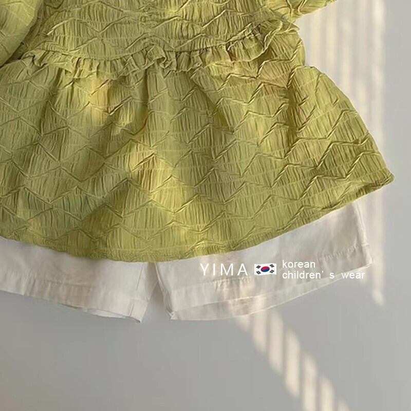 色:マスタードイエローシャツ,オフホワイトのショーツ
