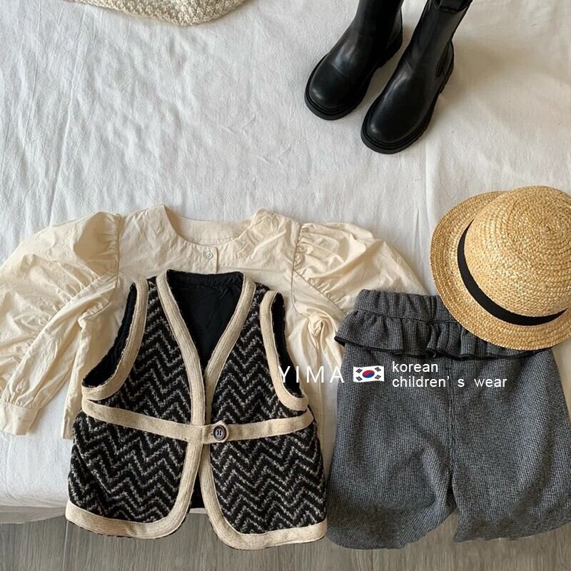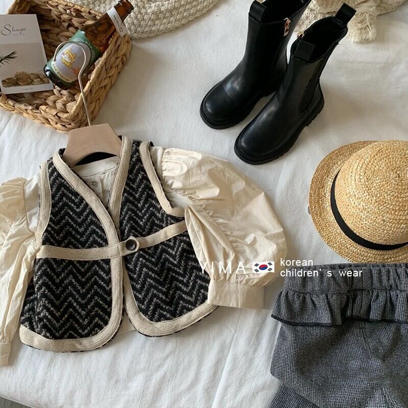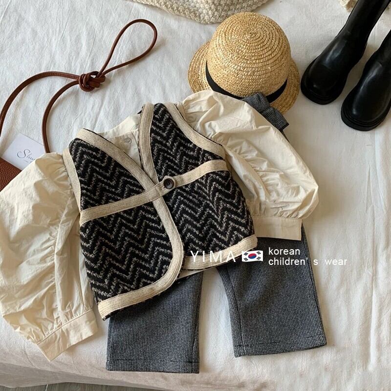 色:ファッションクロス,黒のベスト,ウエスタンスタイルのグレーのチェック柄パンツ,グレーパンツ