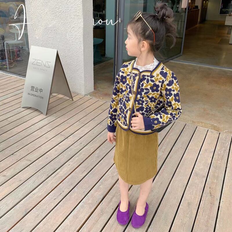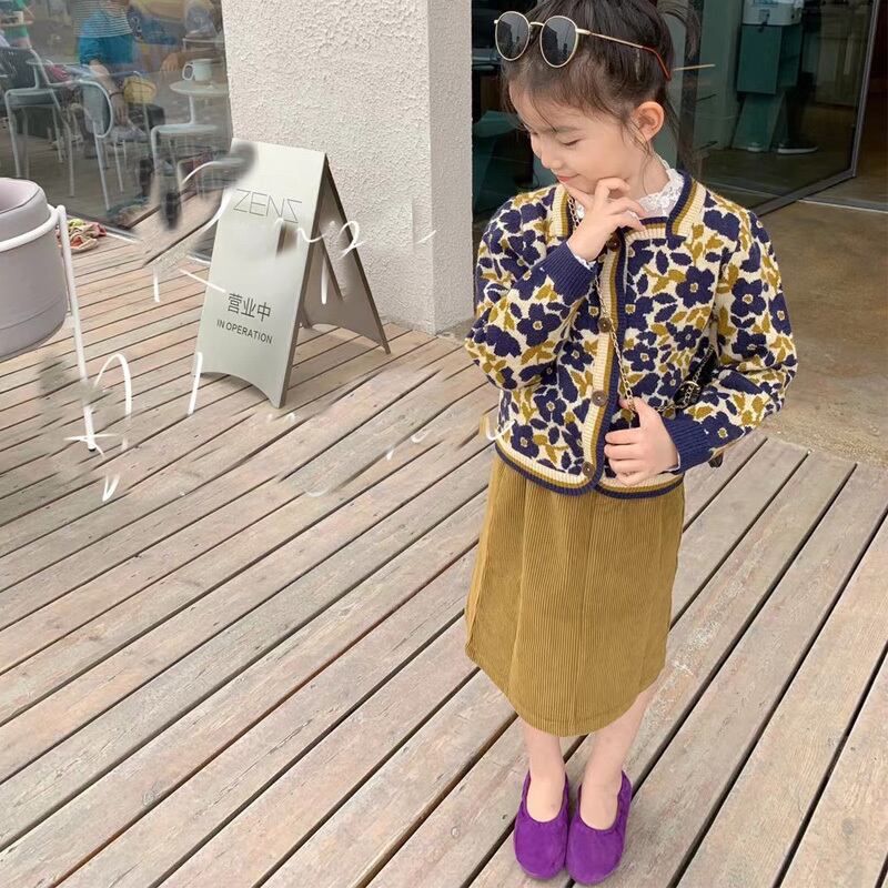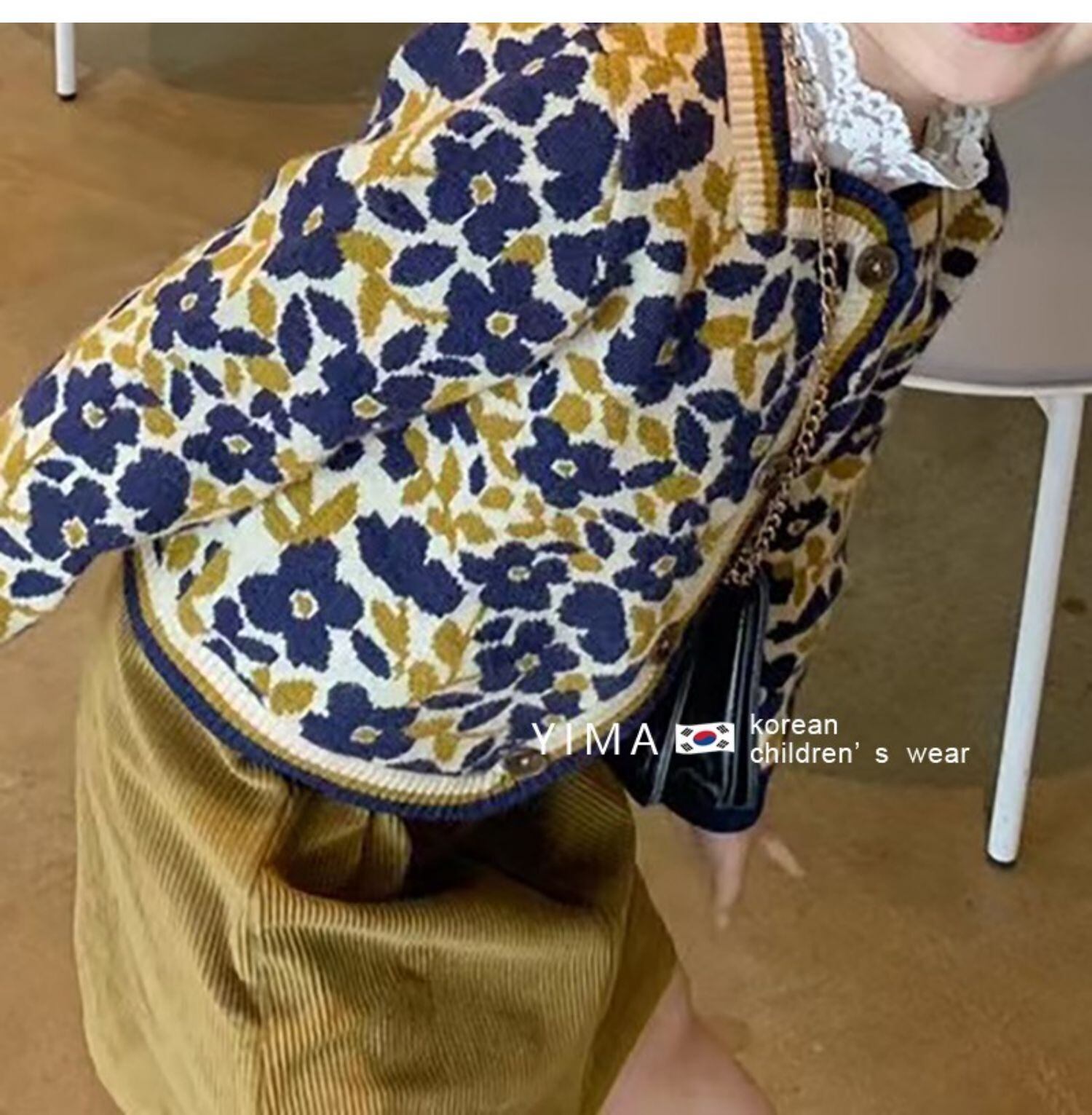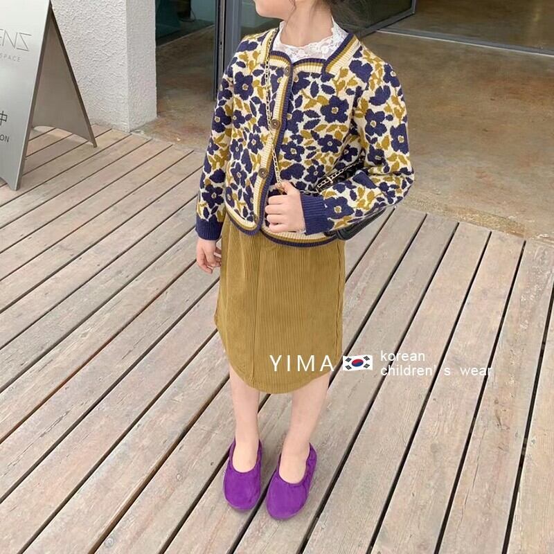 色:ホワイトレースボトミングシャツ,グリーンボトミングシャツ,黄色い花のコート,紫の花のコート,黄色のスカート,青パンツ
