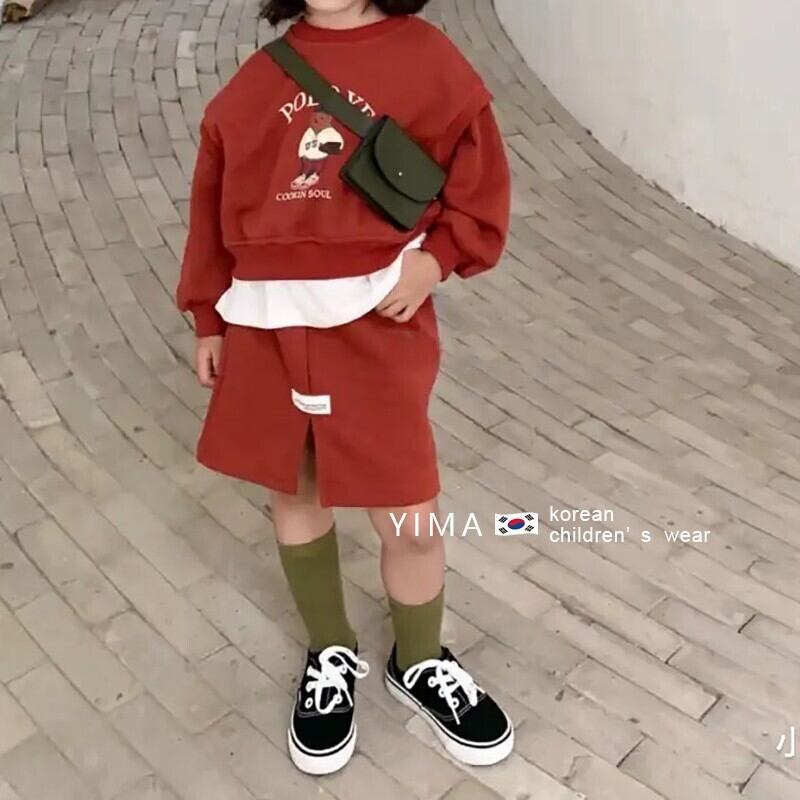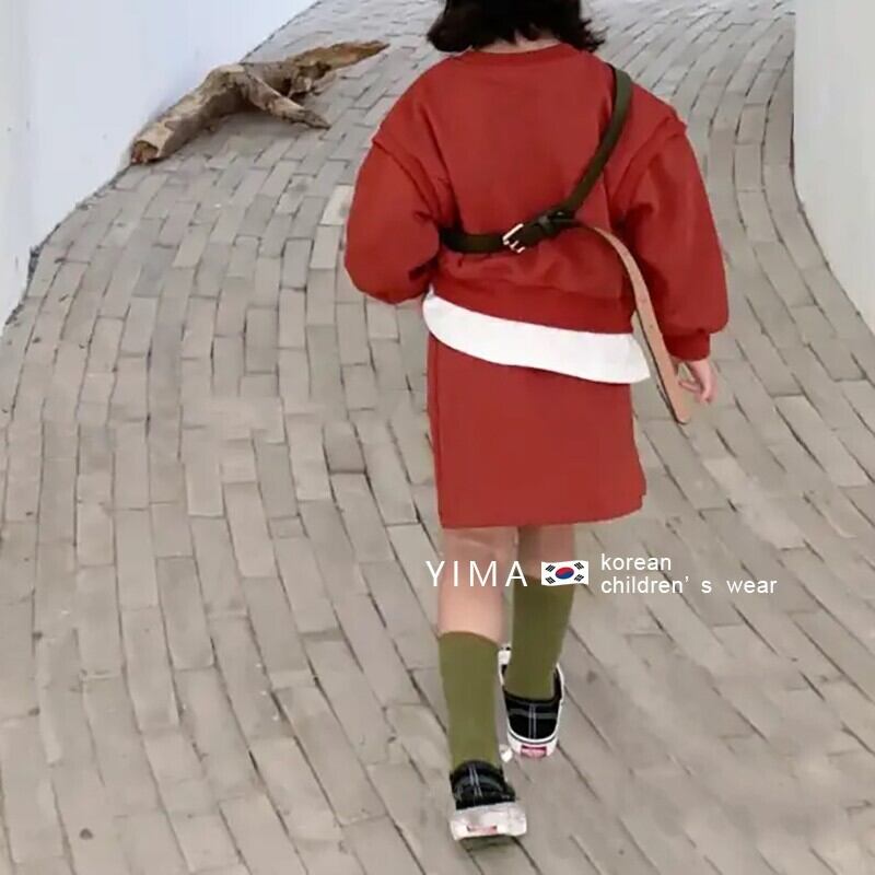 オータムラウンドネックセーター スカート レッドスタイル ロング 秋物 Oネック 3/14 春夏 SS mi0948950886170 | Sagittarius By Constellation -KIDS&BABY-