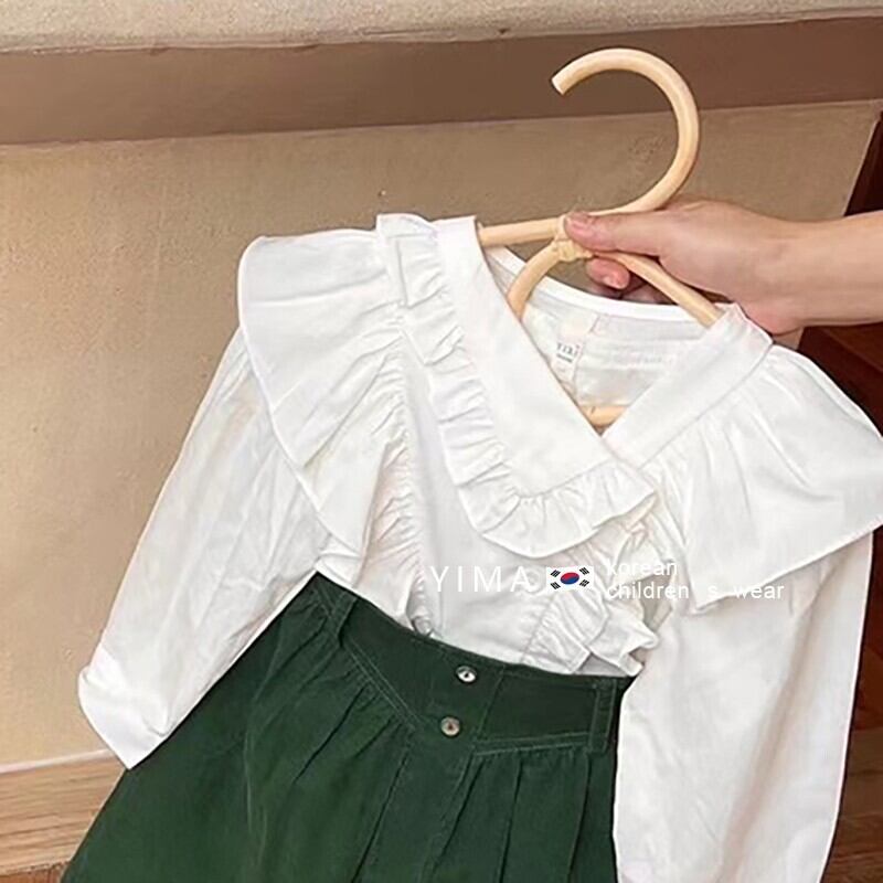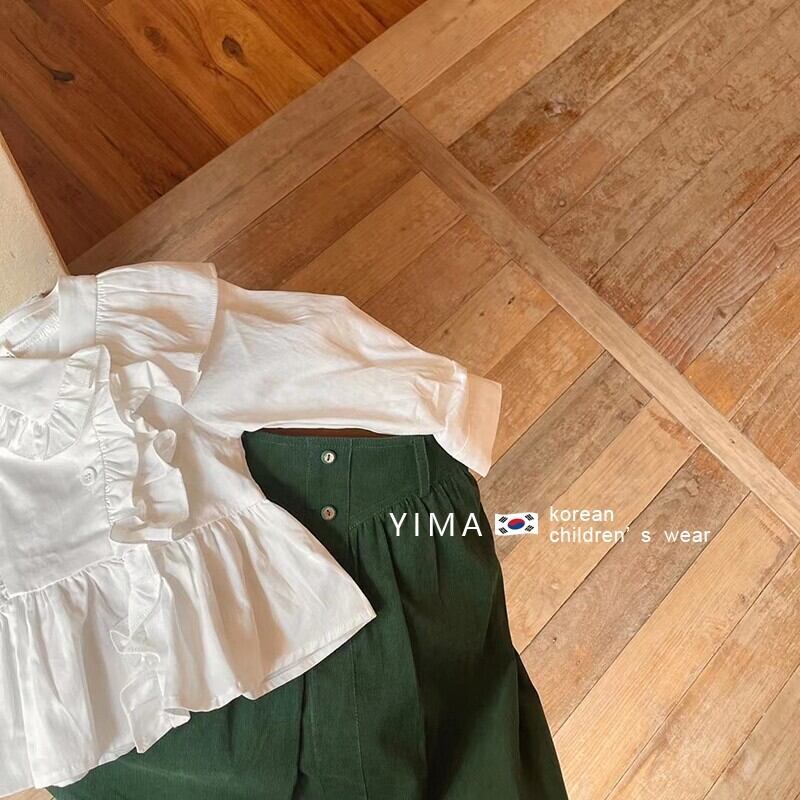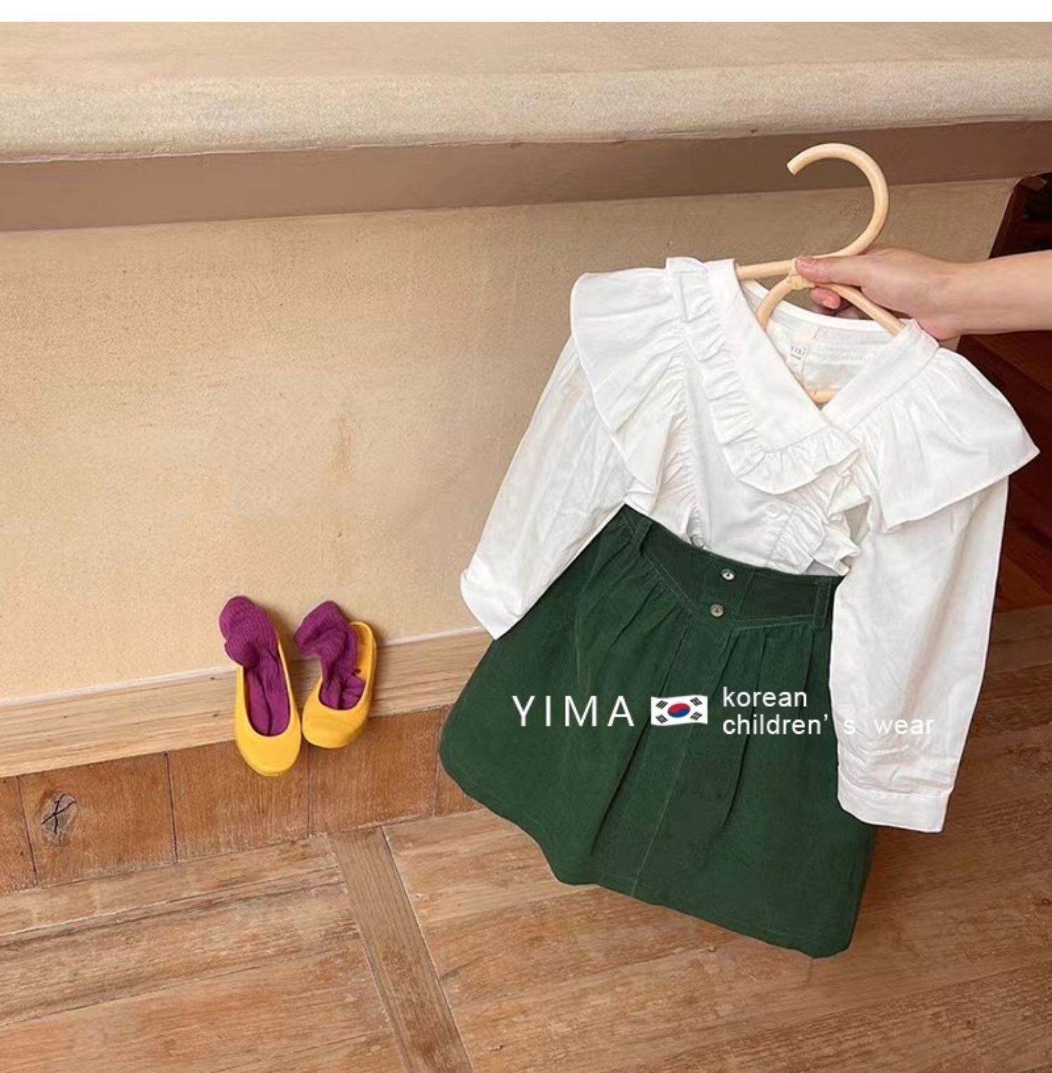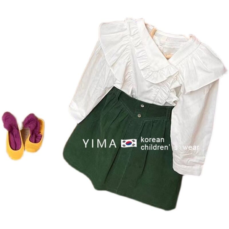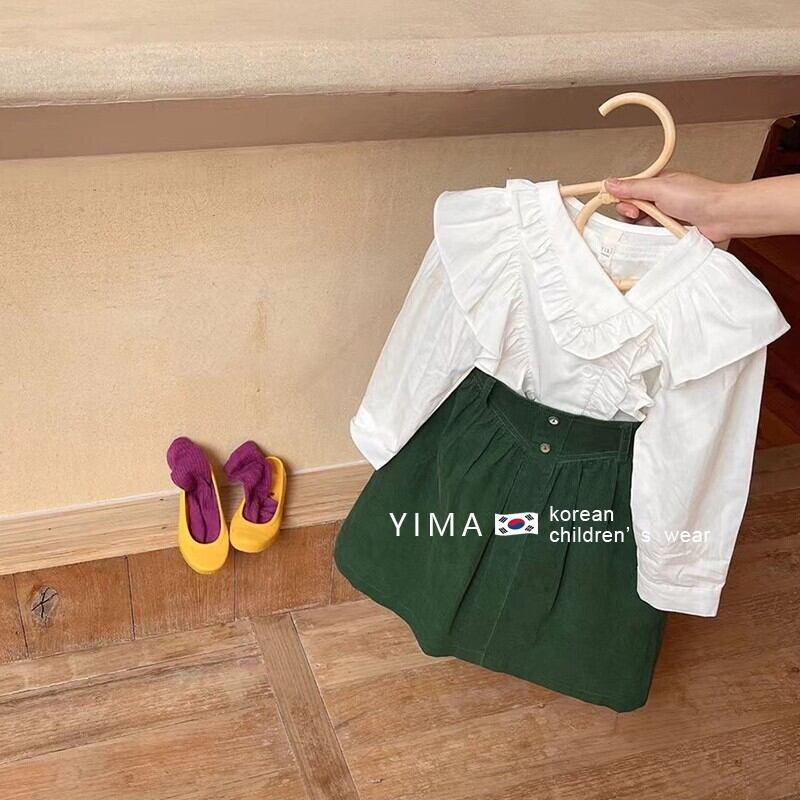 色:白のシャツ,緑のスカート,シャツ+スカート