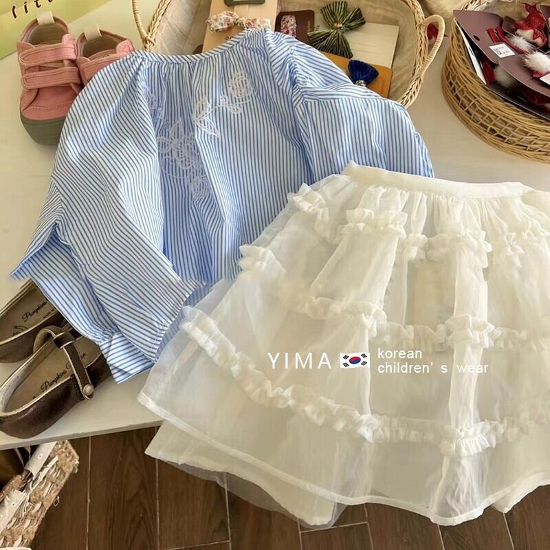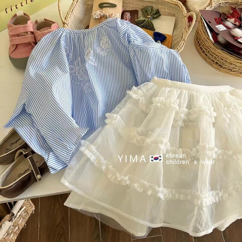 色:青いシャツ,白いスカート
