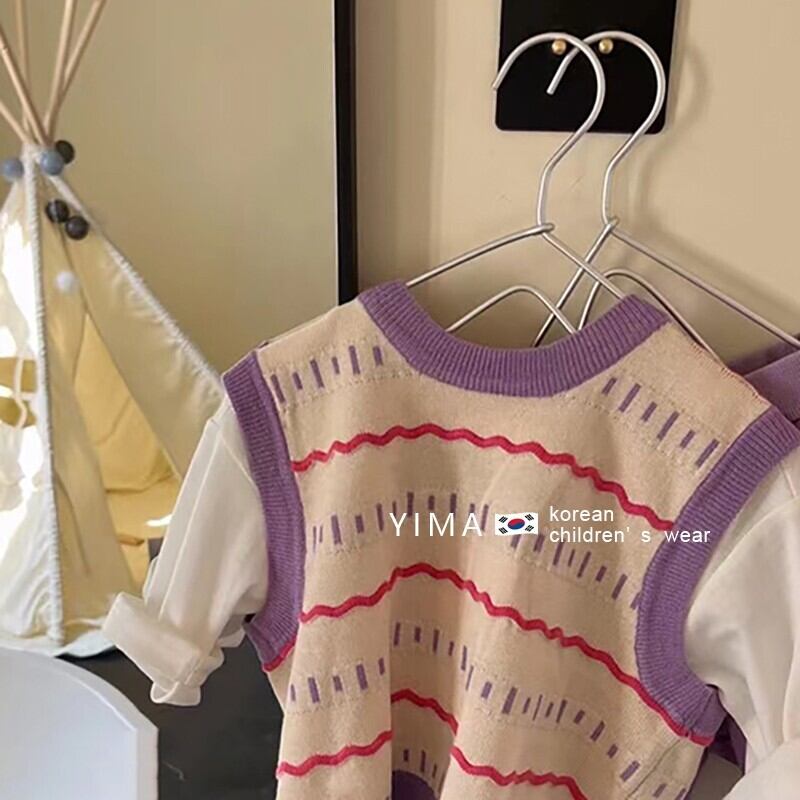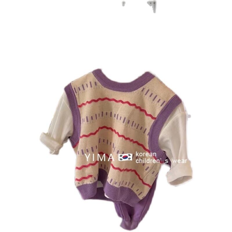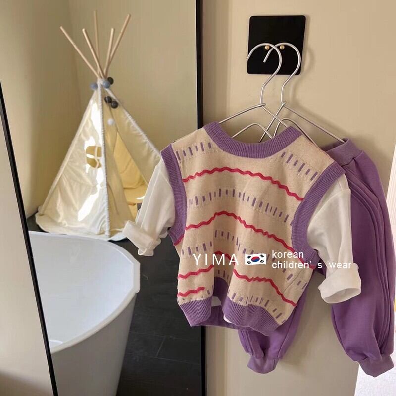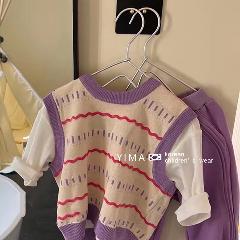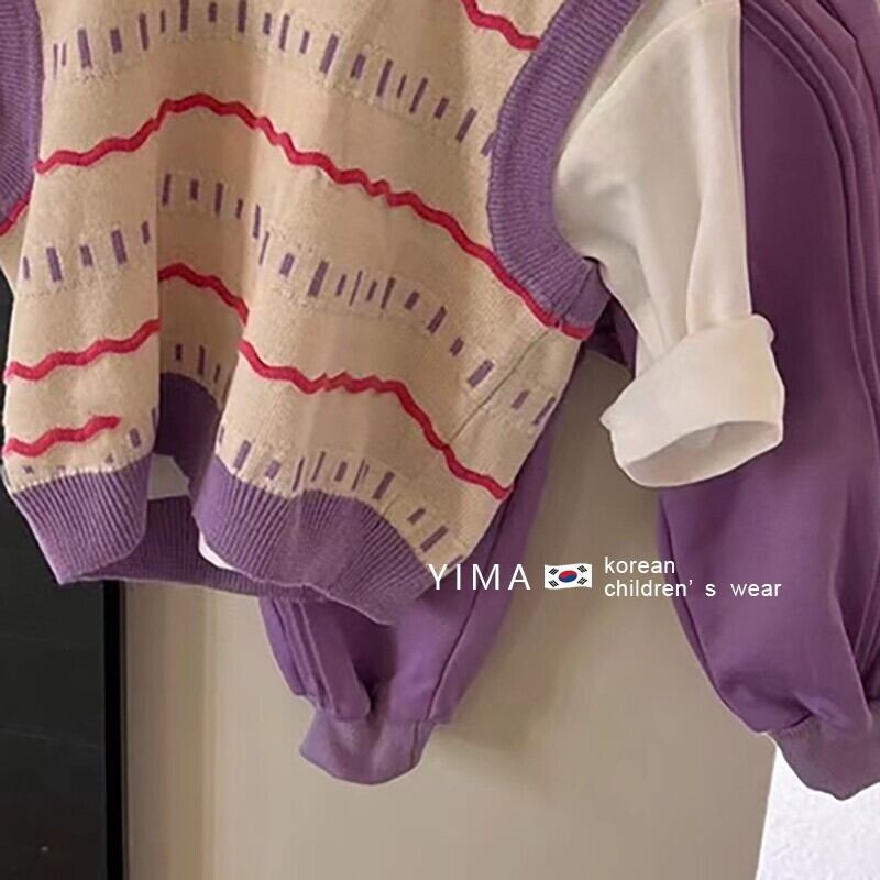 色:アプリコットパープルベスト,ホワイトベーストップ,パープルカジュアルパンツ