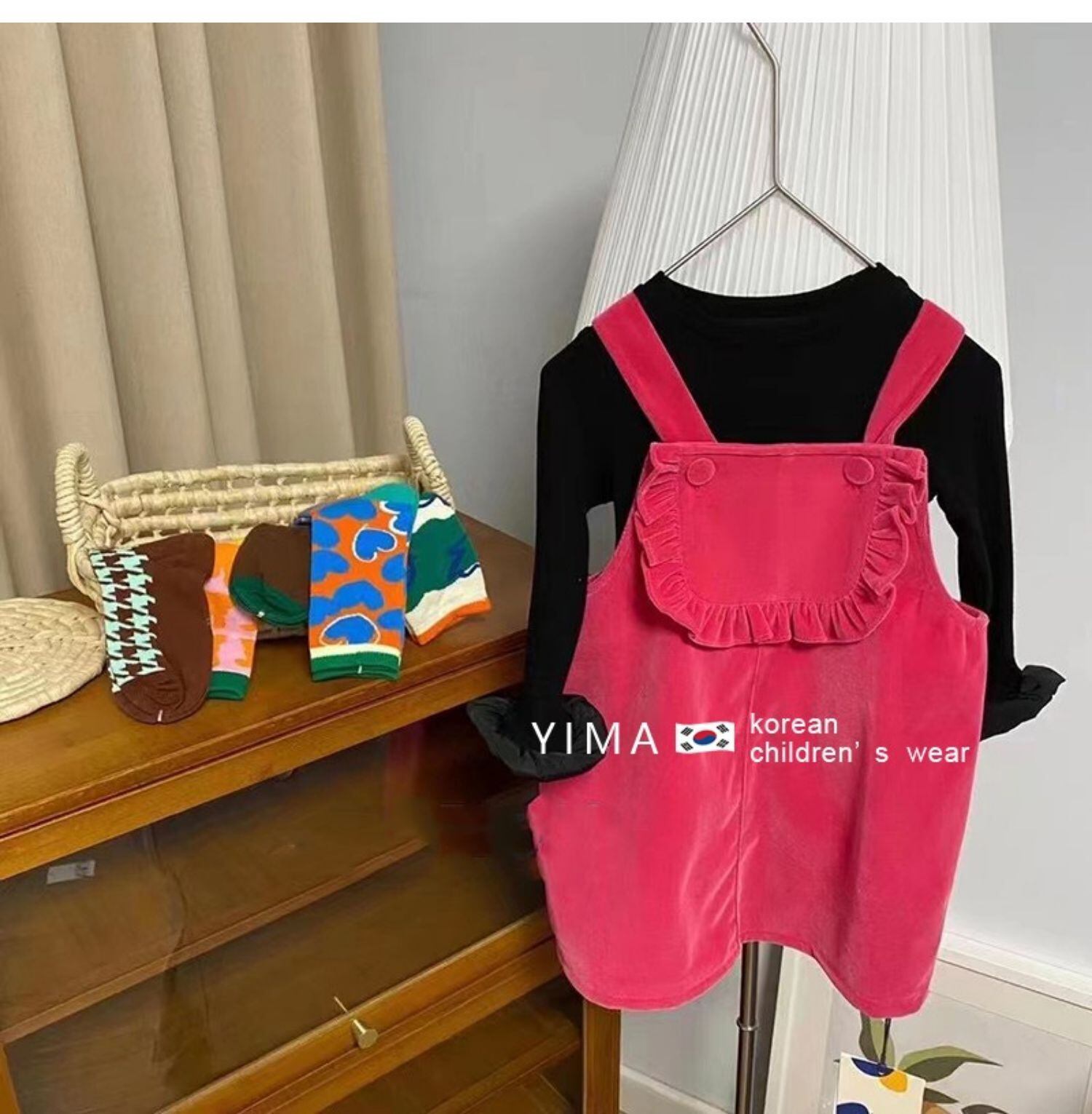色:ピンクのドレス,黒底シャツ