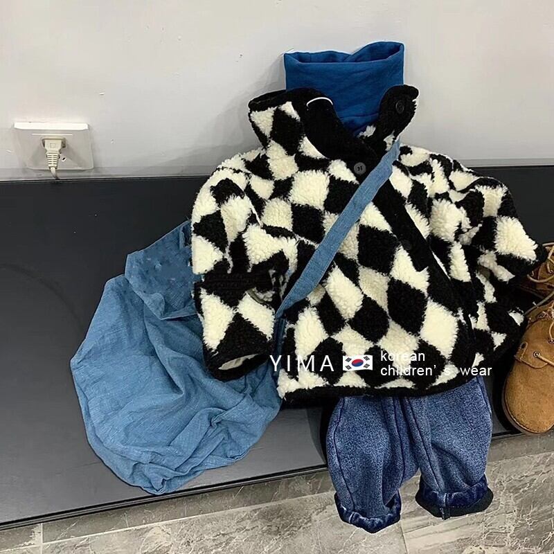 オータムウィンタースタイルブラックホワイト格子柄ジャケット ベルベットセーター コットン 秋物 冬物 3/14 春夏 SS mi0915047323400 | Sagittarius By Constellation -KIDS&BABY-