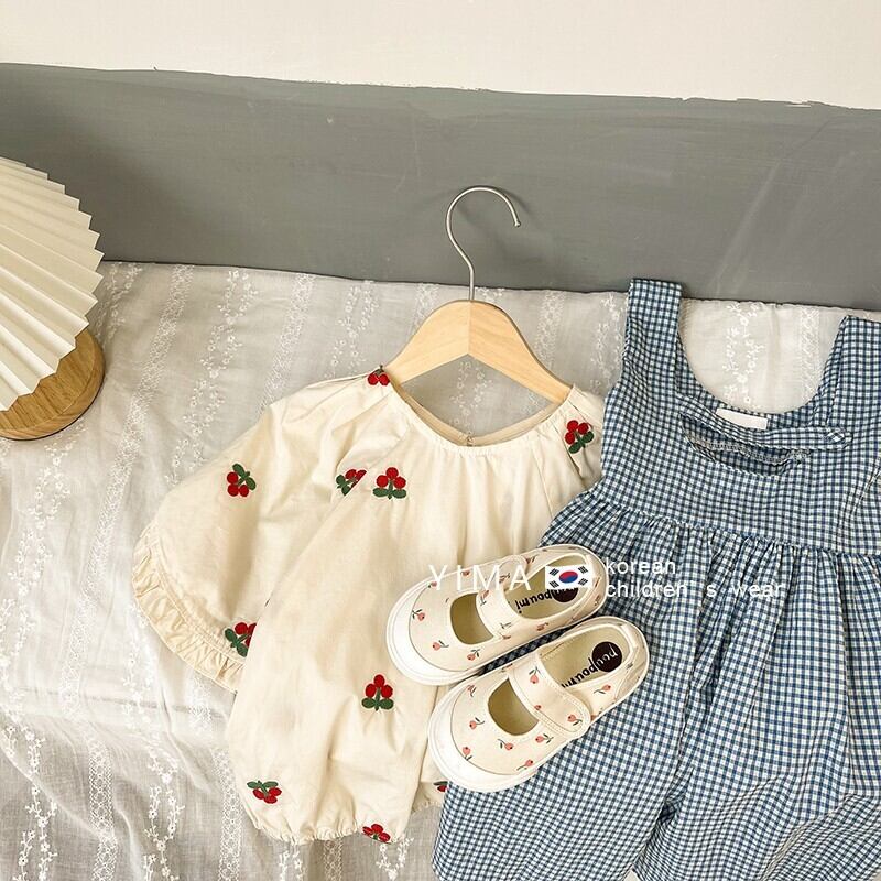 色:格子縞のドレス,ベージュのベビーシャツ