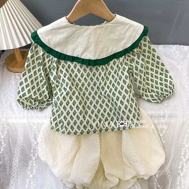 色:緑のシャツ,ホワイトショーツ