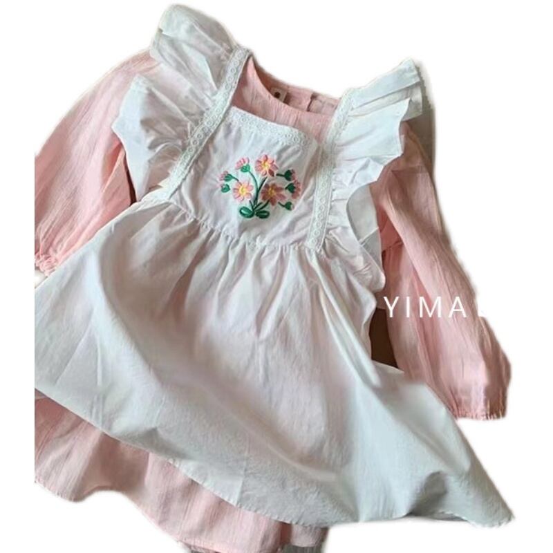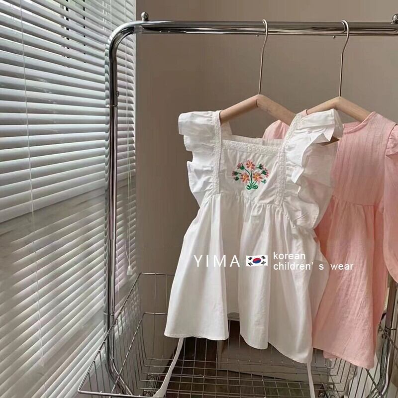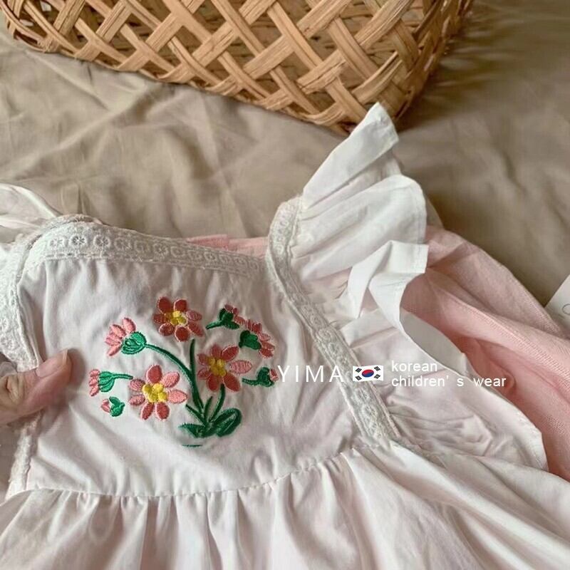 色:ピンクのドレス,白いベストスカート
