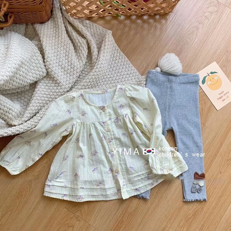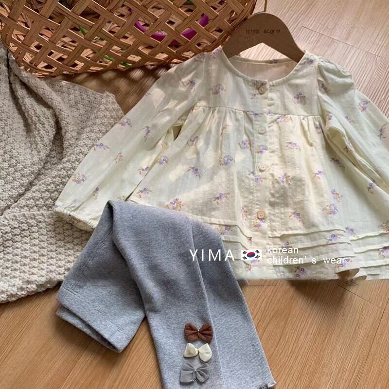 スプリングスタイルフローラルシャツ ラウンドネックトップス ロング 春物 花柄 Oネック 3/14 春夏 SS mi0921267573638 | Sagittarius By Constellation -KIDS&BABY-