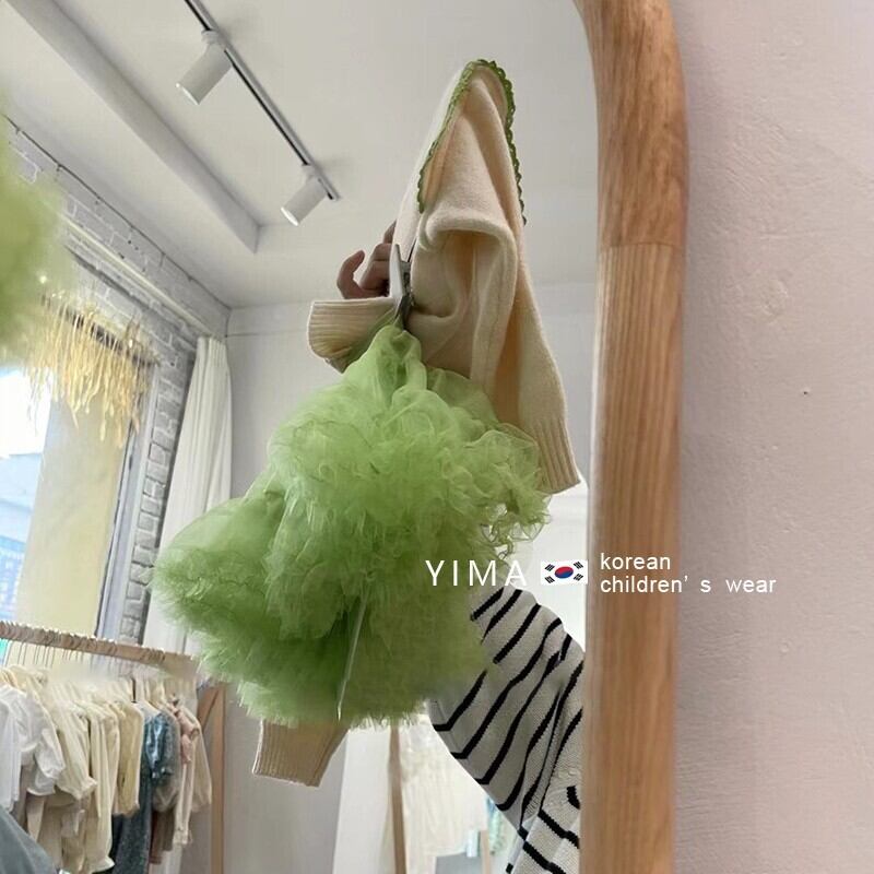色:ベージュのセーター,抹茶グリーンパフスカート
