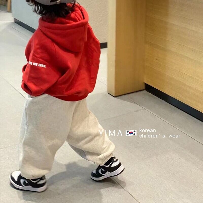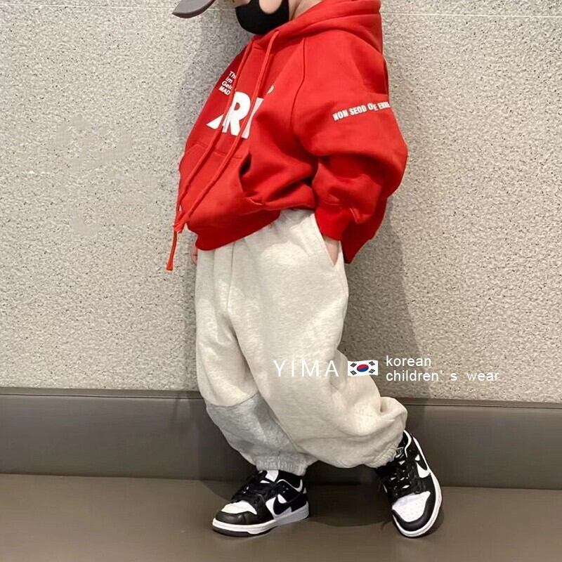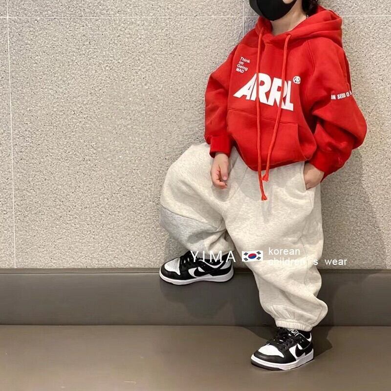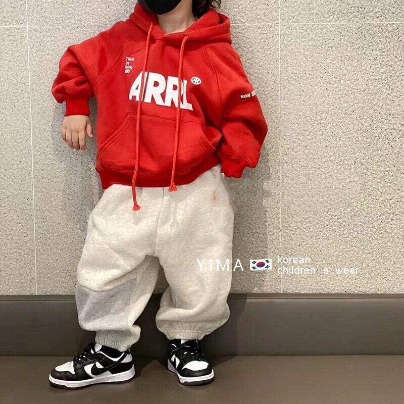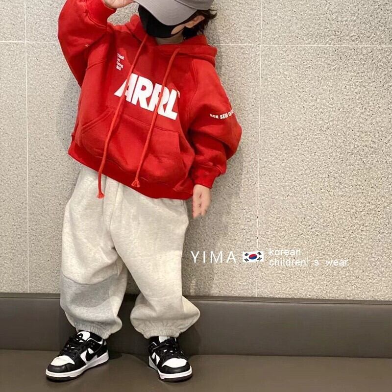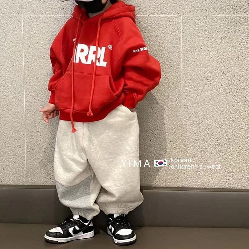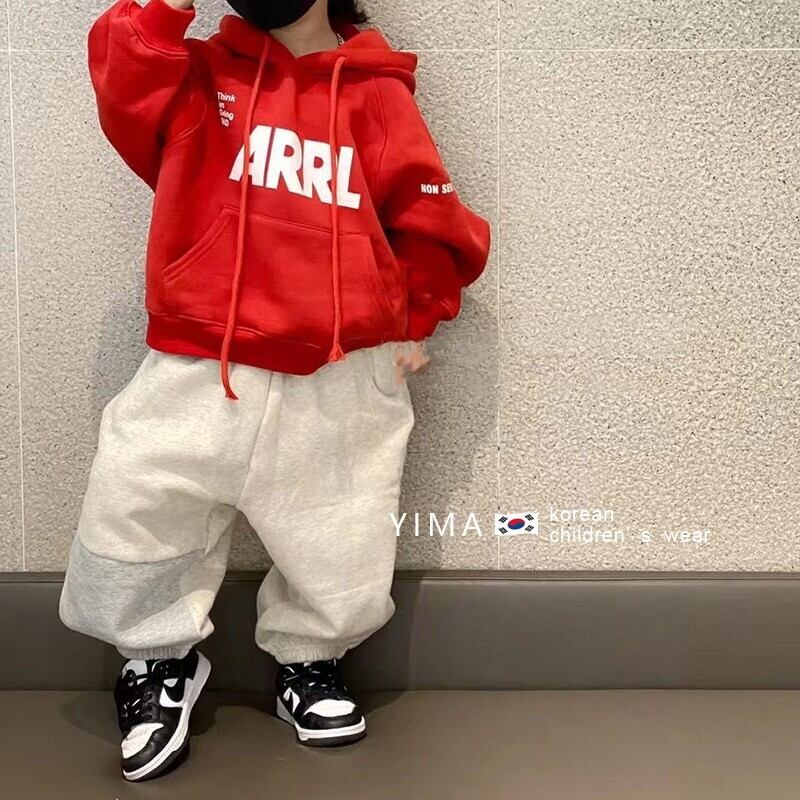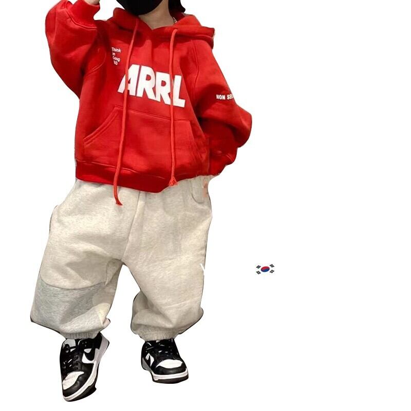 色:赤とベルベットのスウェットシャツ,グレーのセーター,グレーのスマイリーパンツ