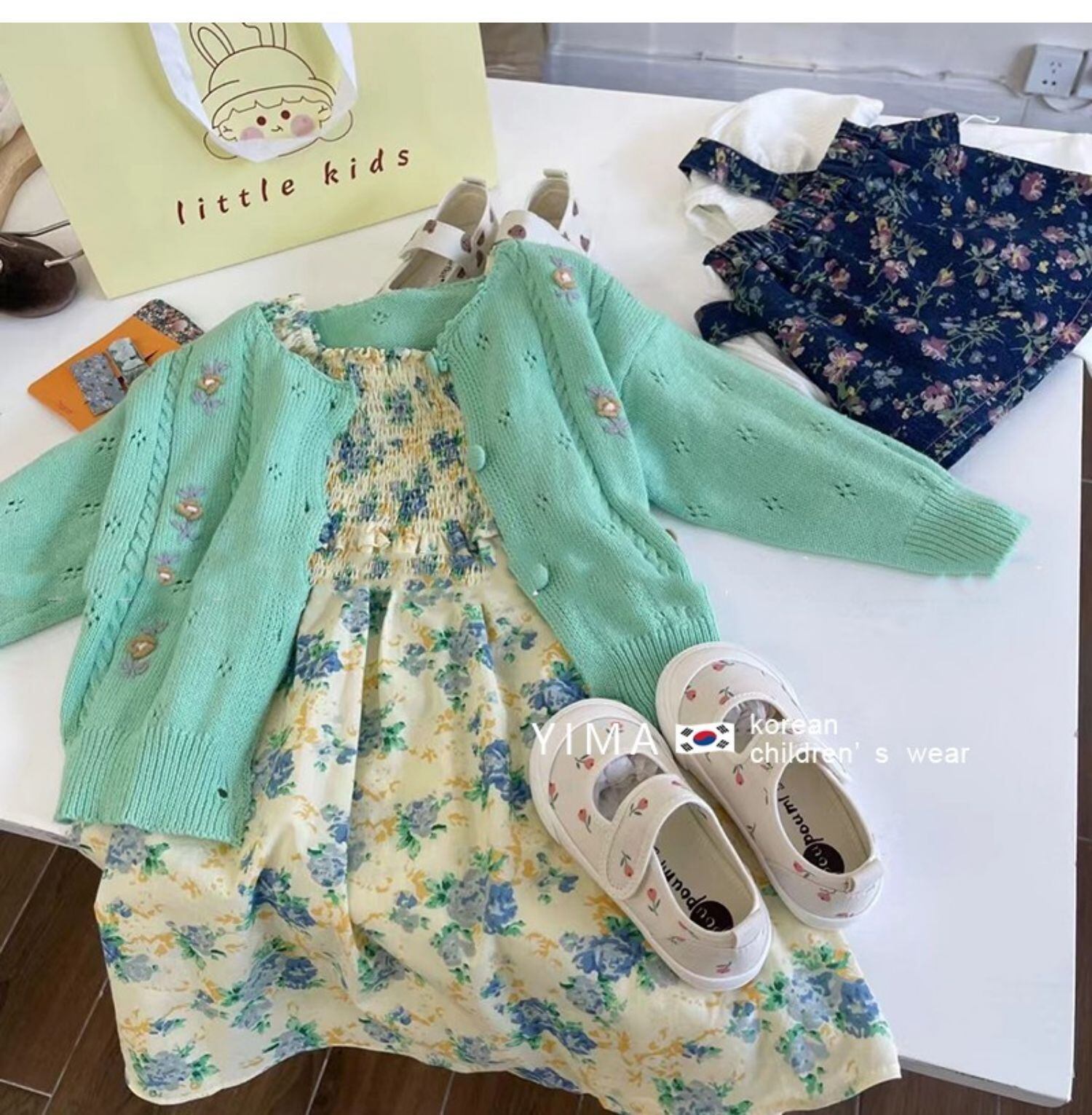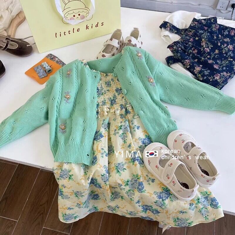 色:カラードレス,ミントグリーンニットカーディガン