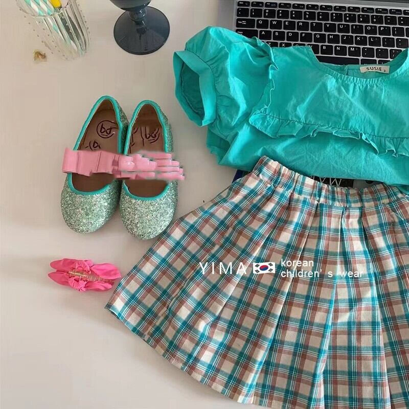色:グリーントップ,チェック柄スカート