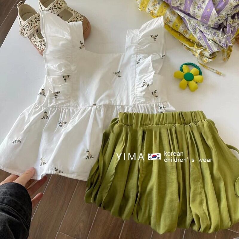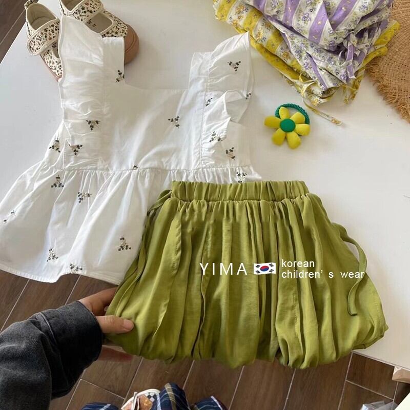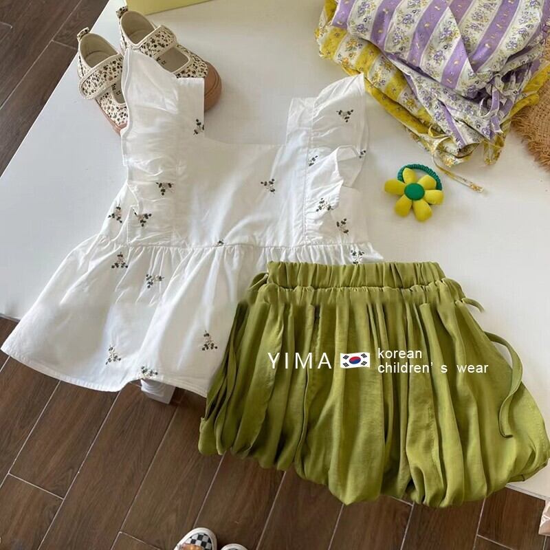 色:白いベスト,グリーンショートパンツ