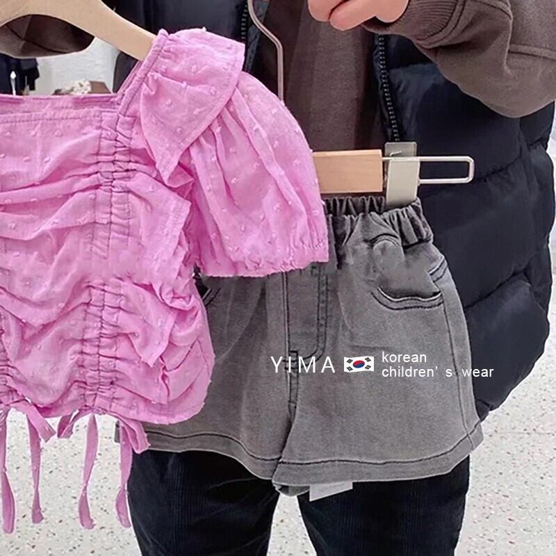 色:ピンクのシャツ,グレーのショートパンツ