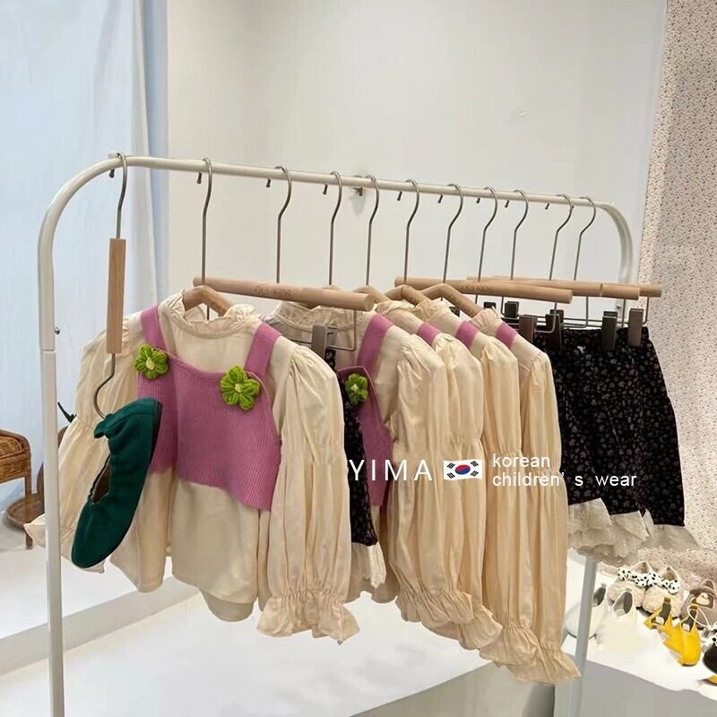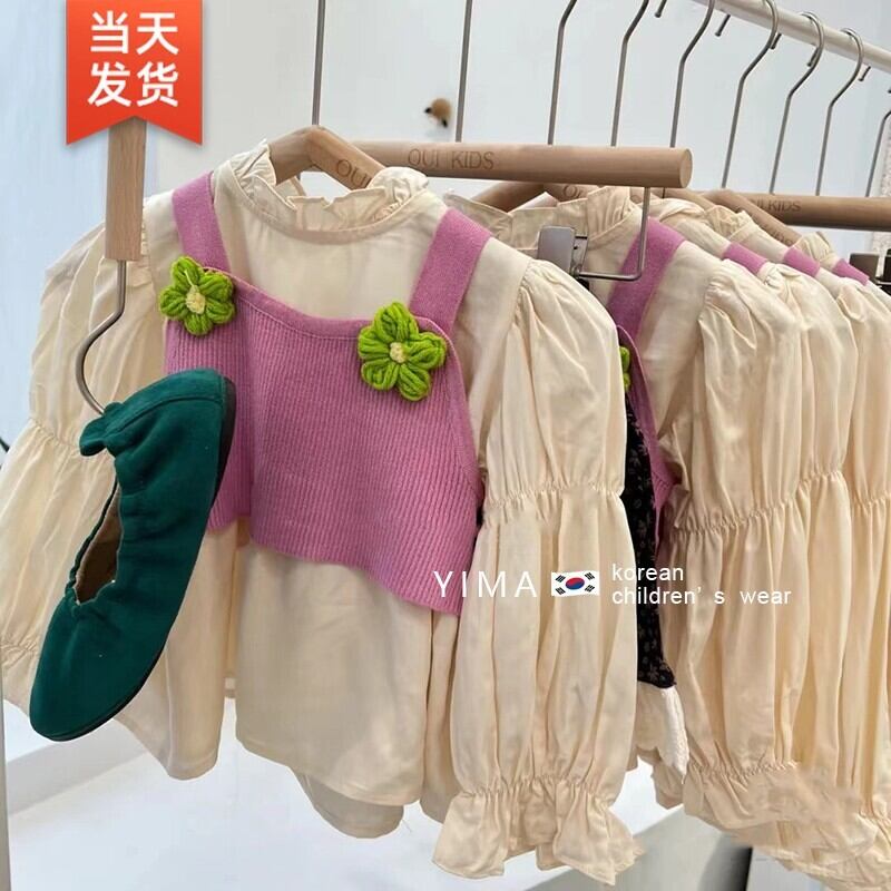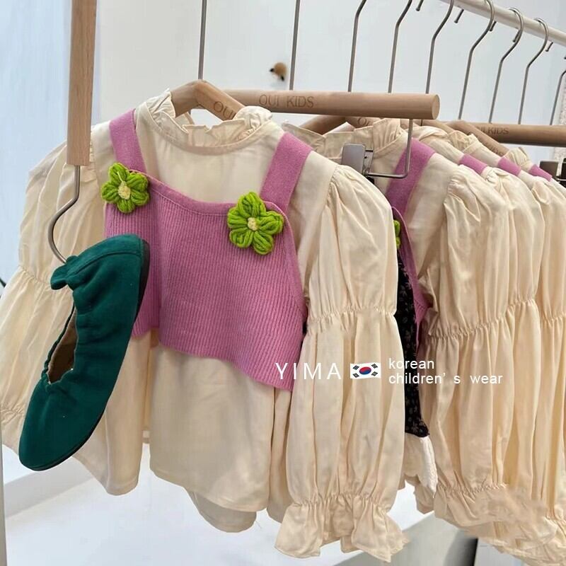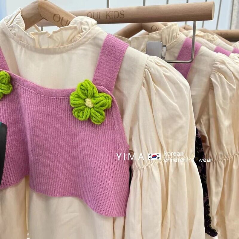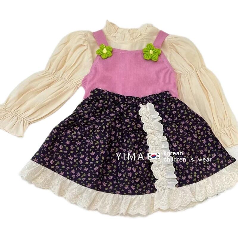 色:ピンクのニットベスト,アプリコットシャツ,紫のスカート