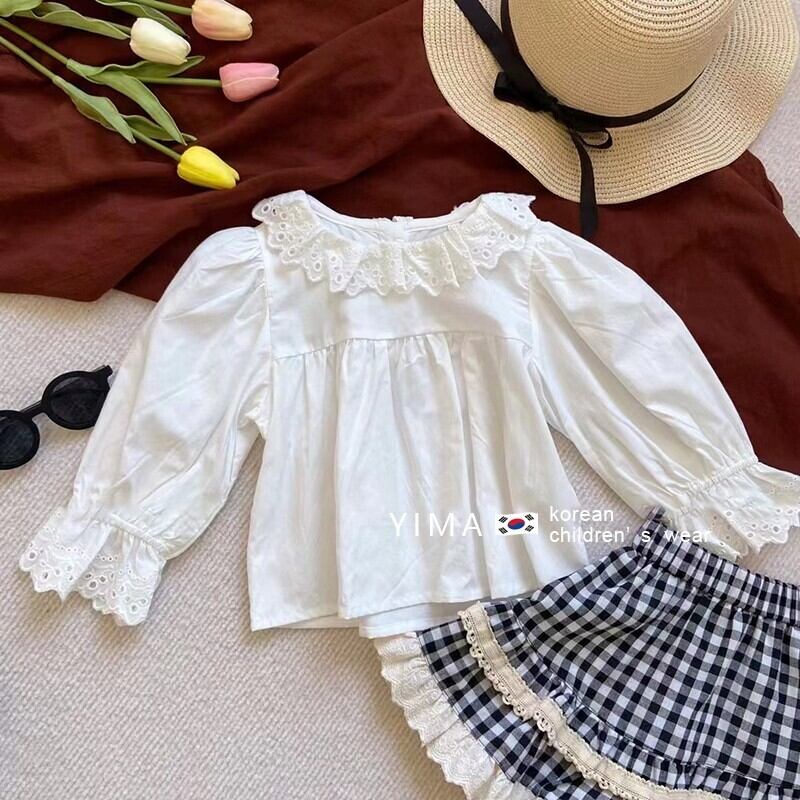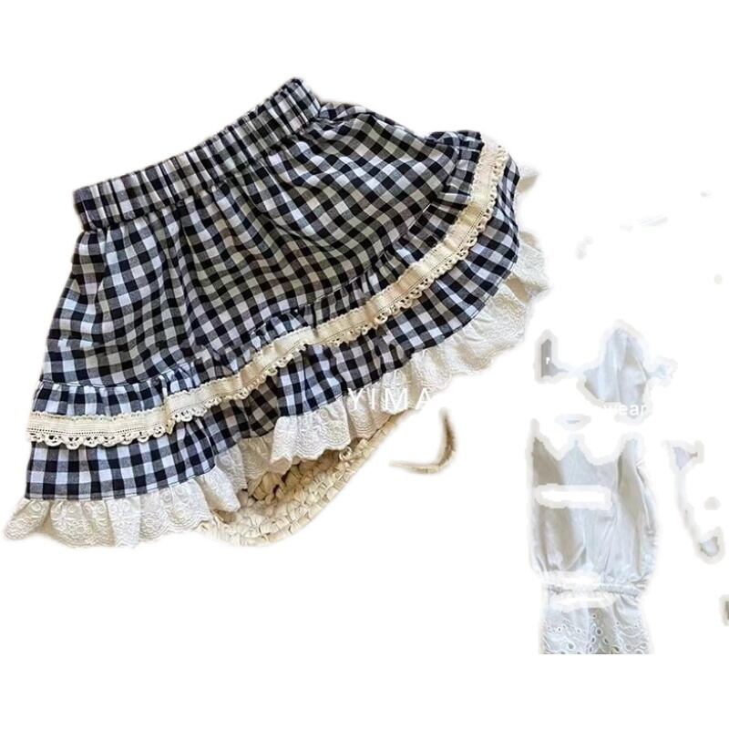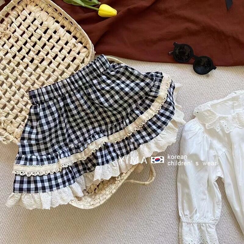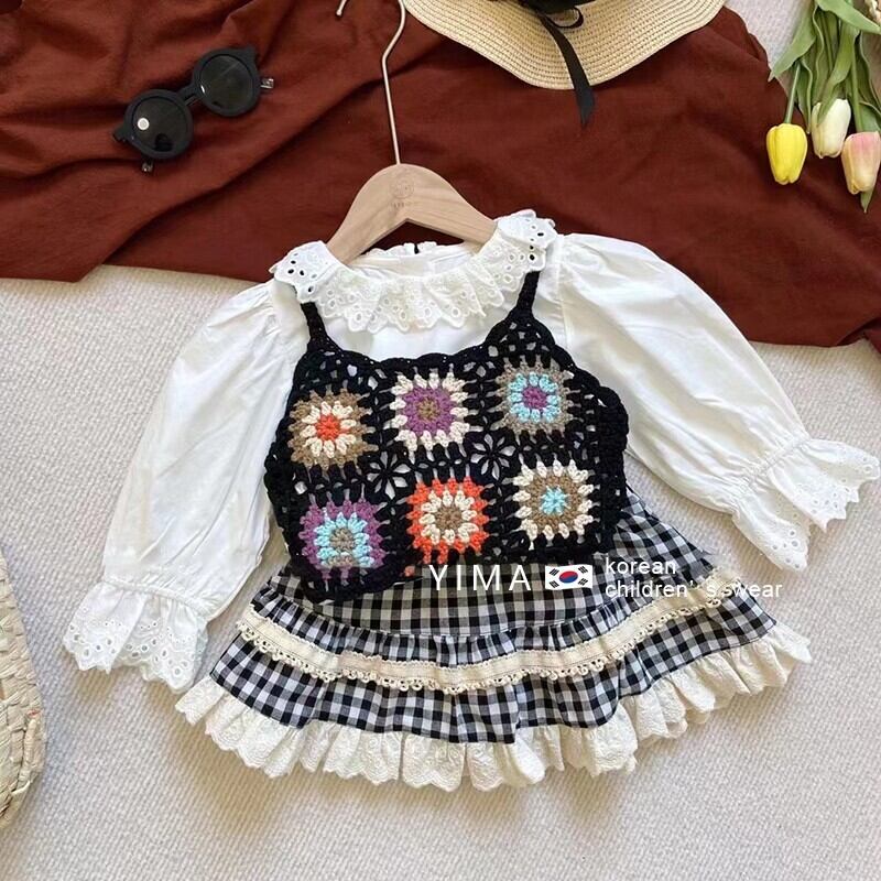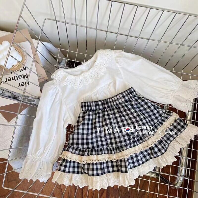 色:白長袖シャツ,チェック柄スカート,ブラックニットベスト