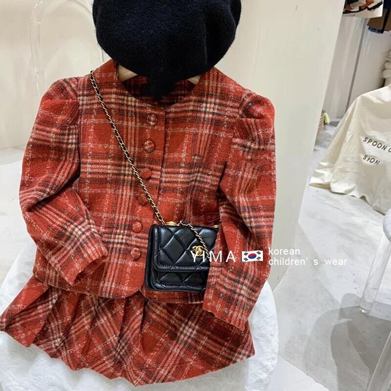 スプリングレッドスタイル格子柄ジャケット プリーツスカート セット 春物 3/14 春夏 SS mi0940478464615 | Sagittarius By Constellation -KIDS&BABY-