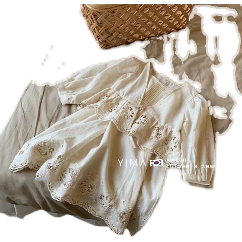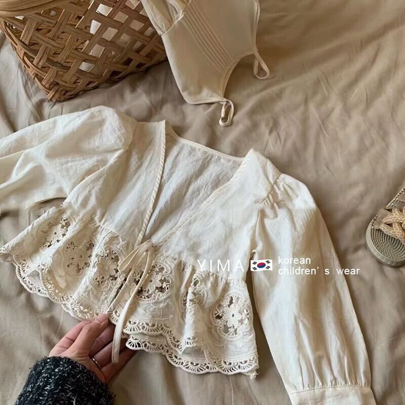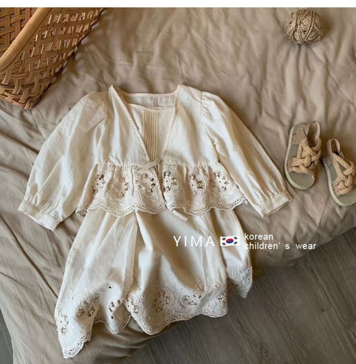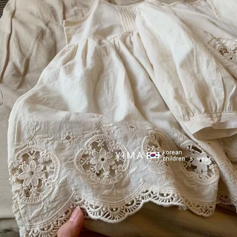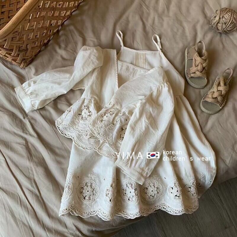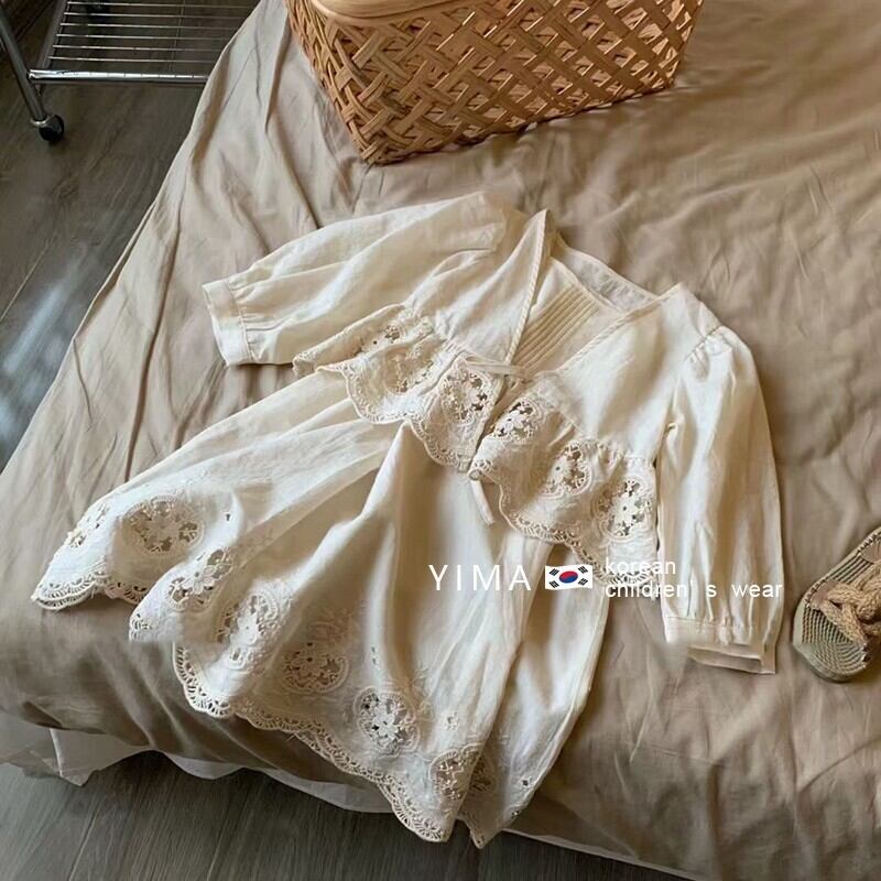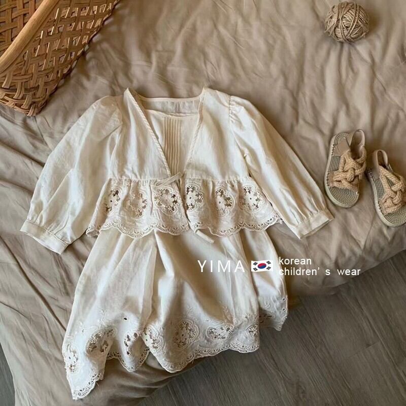 色:オフホワイトのドレス,-白いレースアップカーディガン
