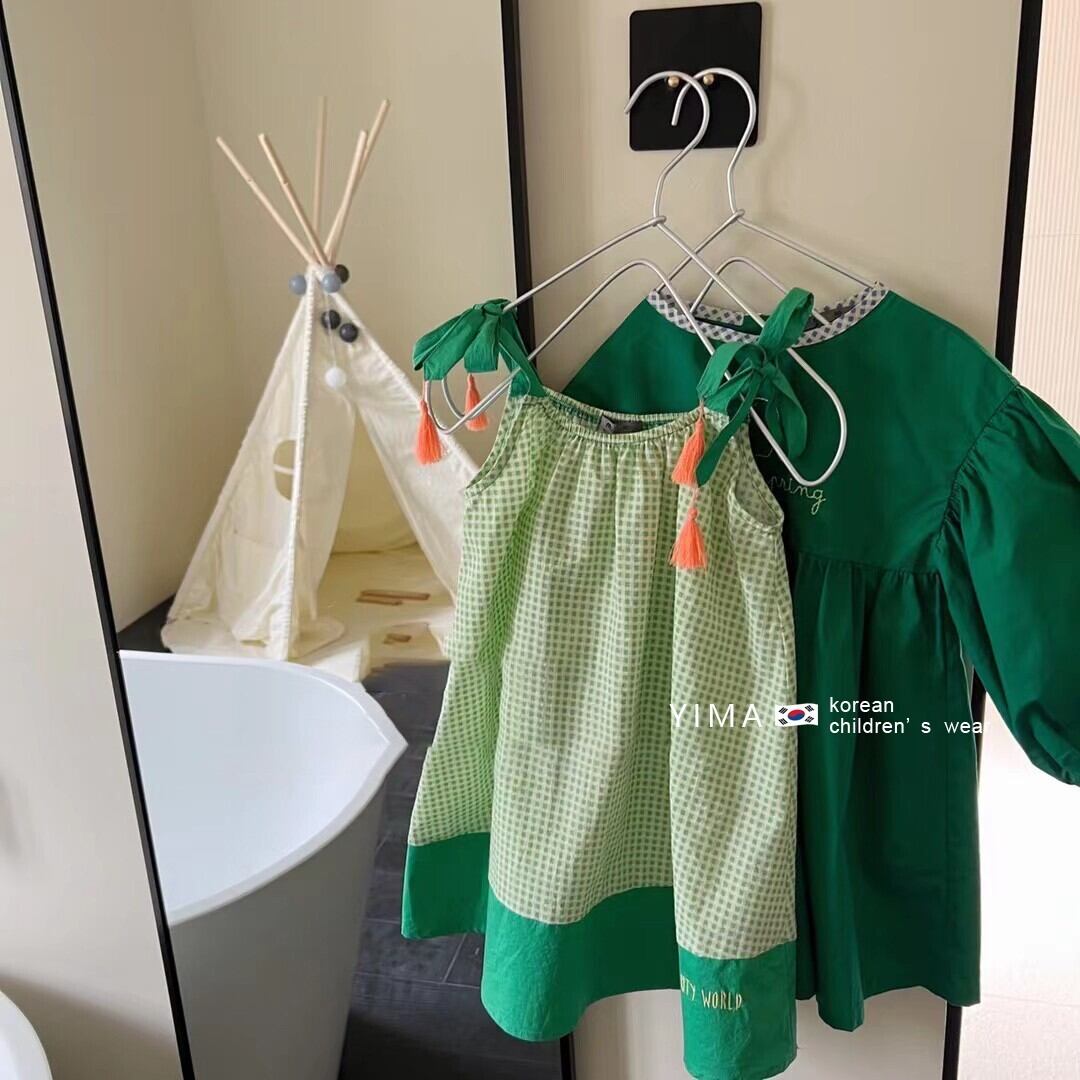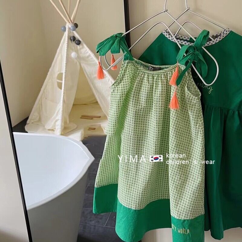 色:グリーンチェック柄のサスペンダースカート