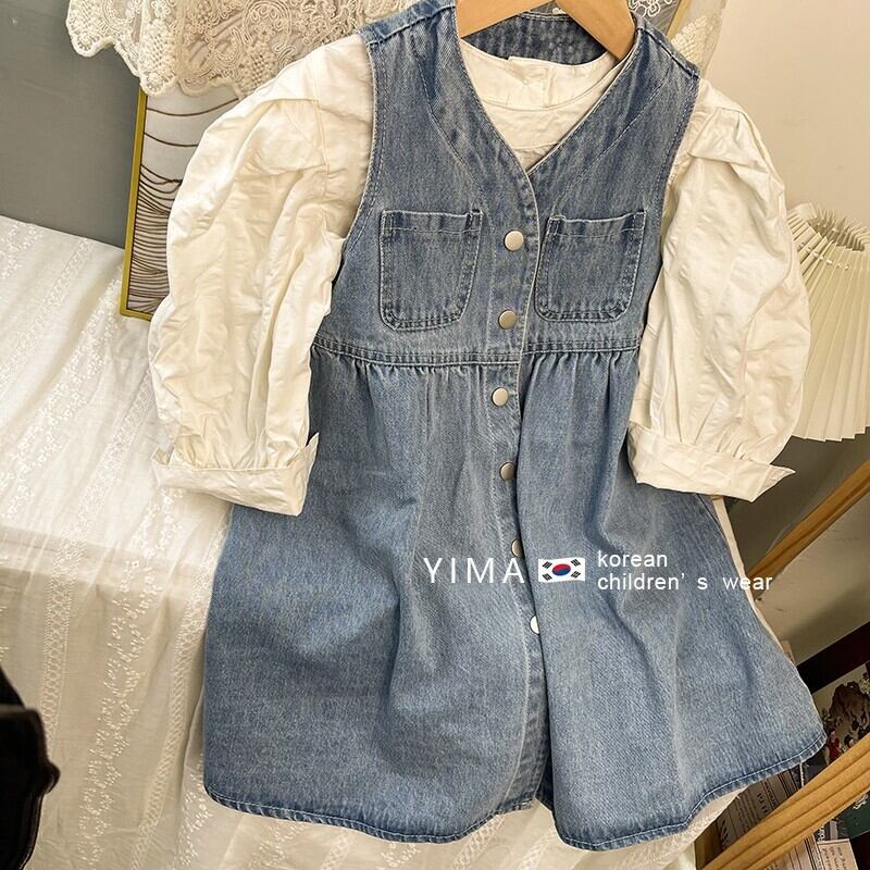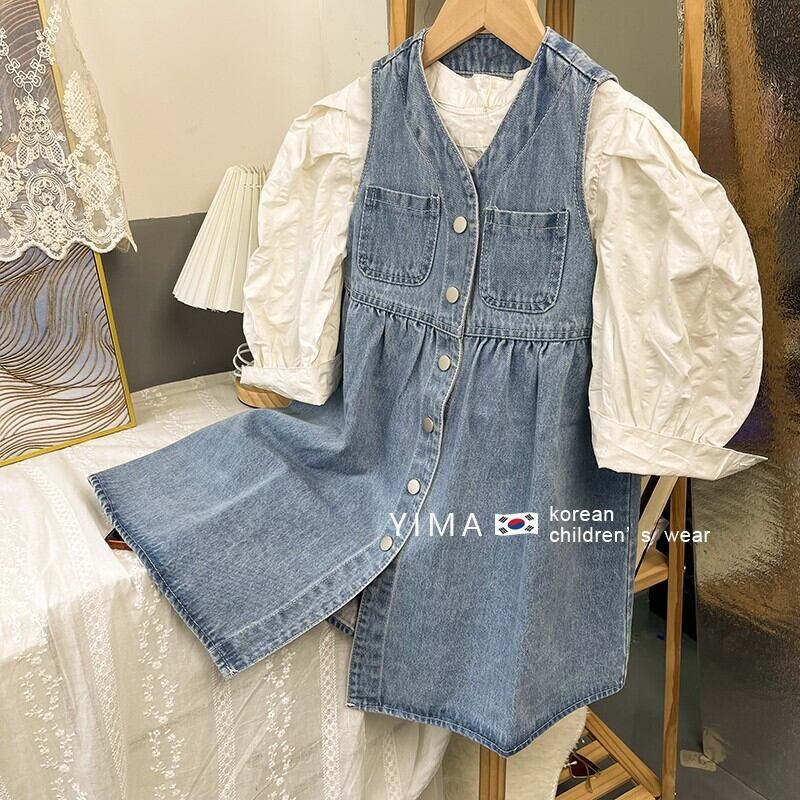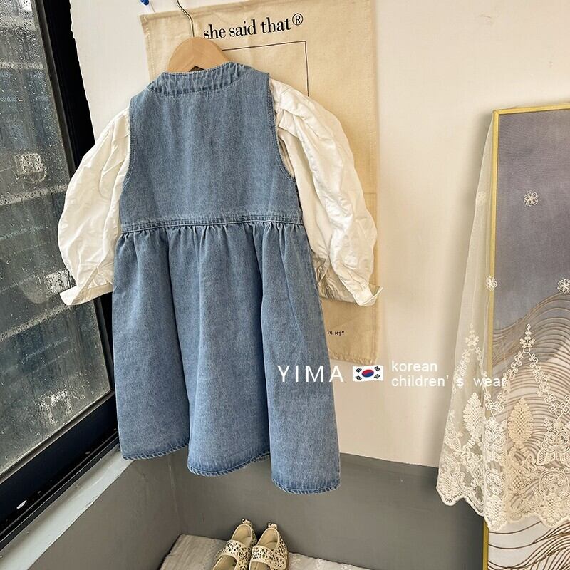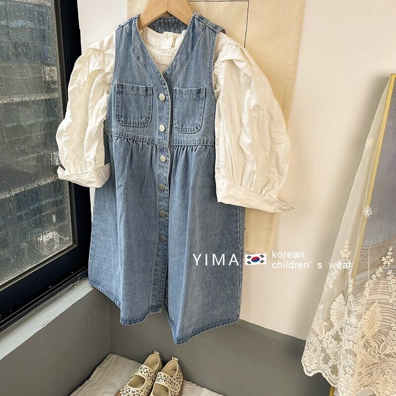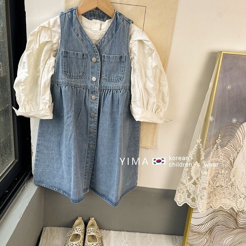 色:デニムベストスカート,アプリコットシャツ