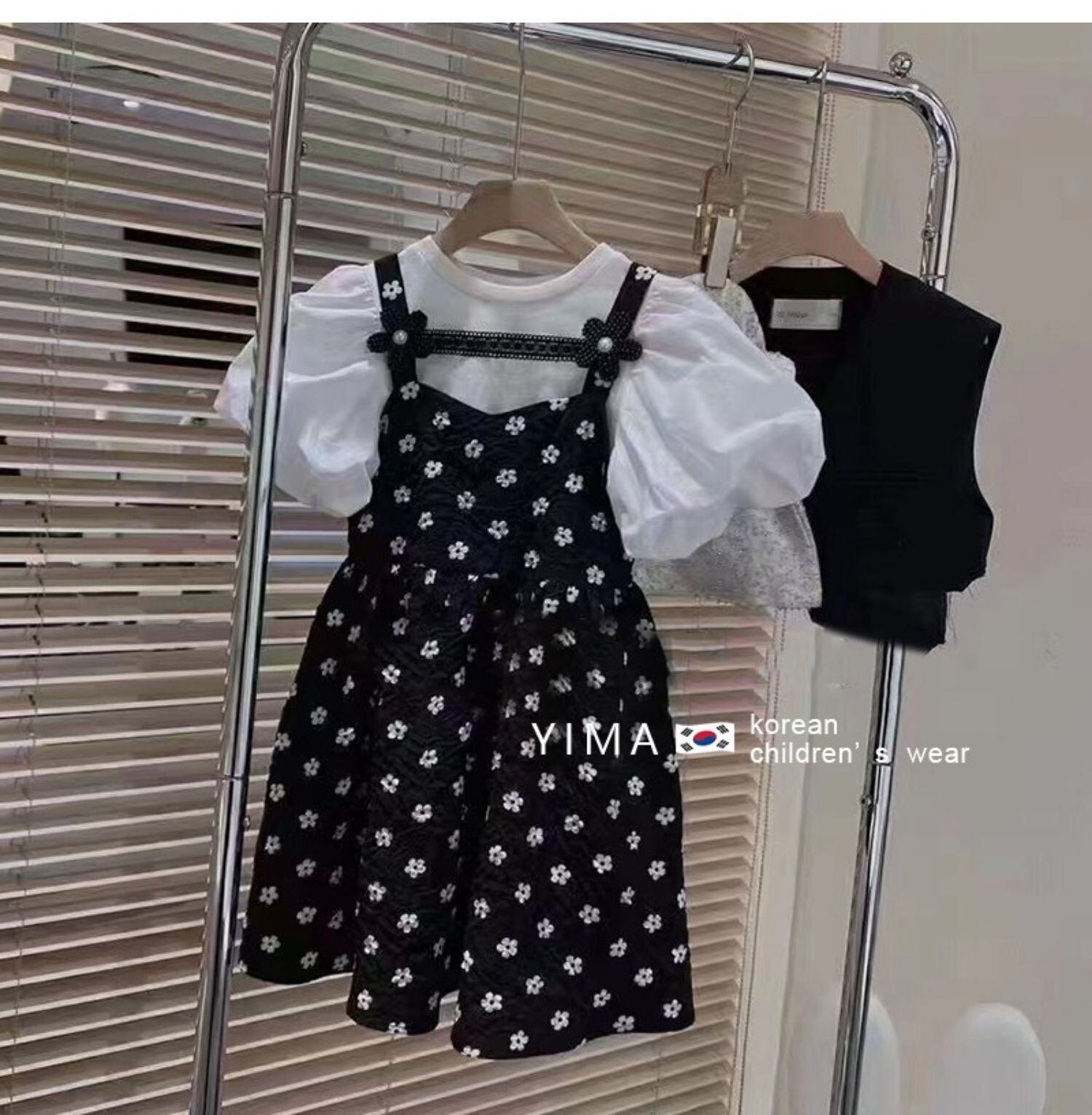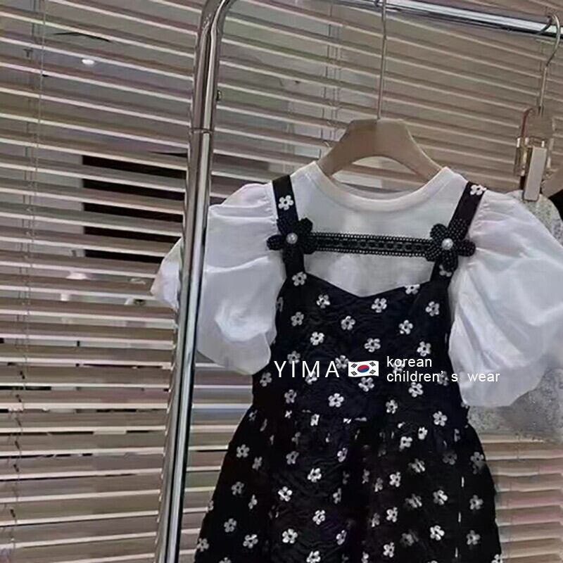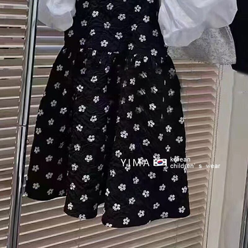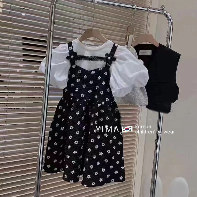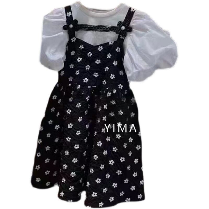 色:ブラックフローラルサスペンダードレス,ホワイトベーストップ