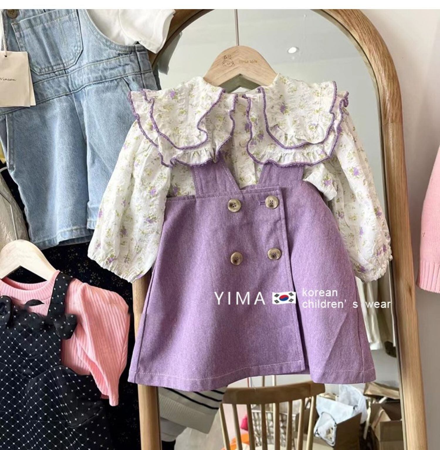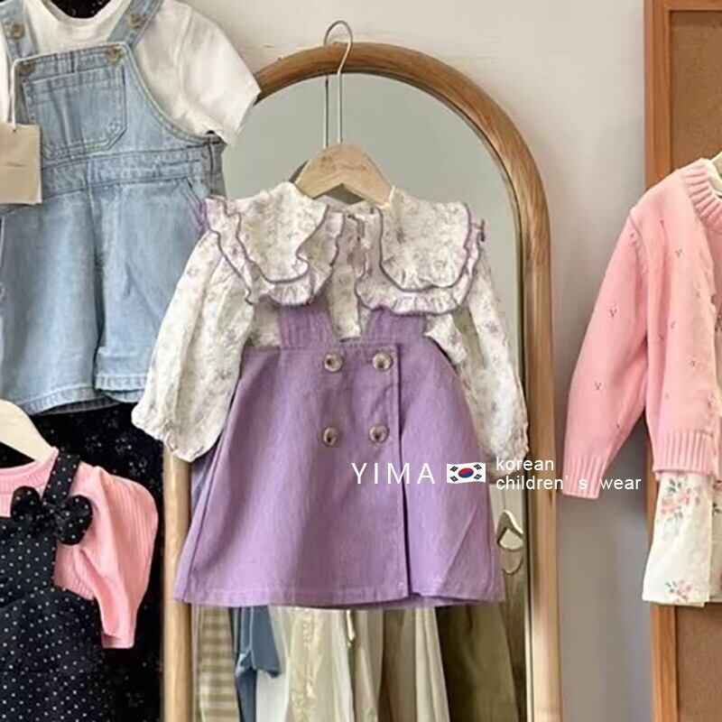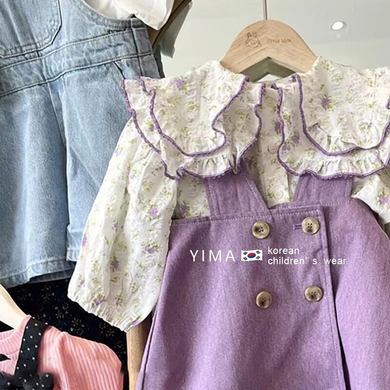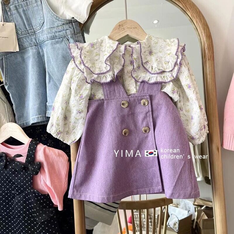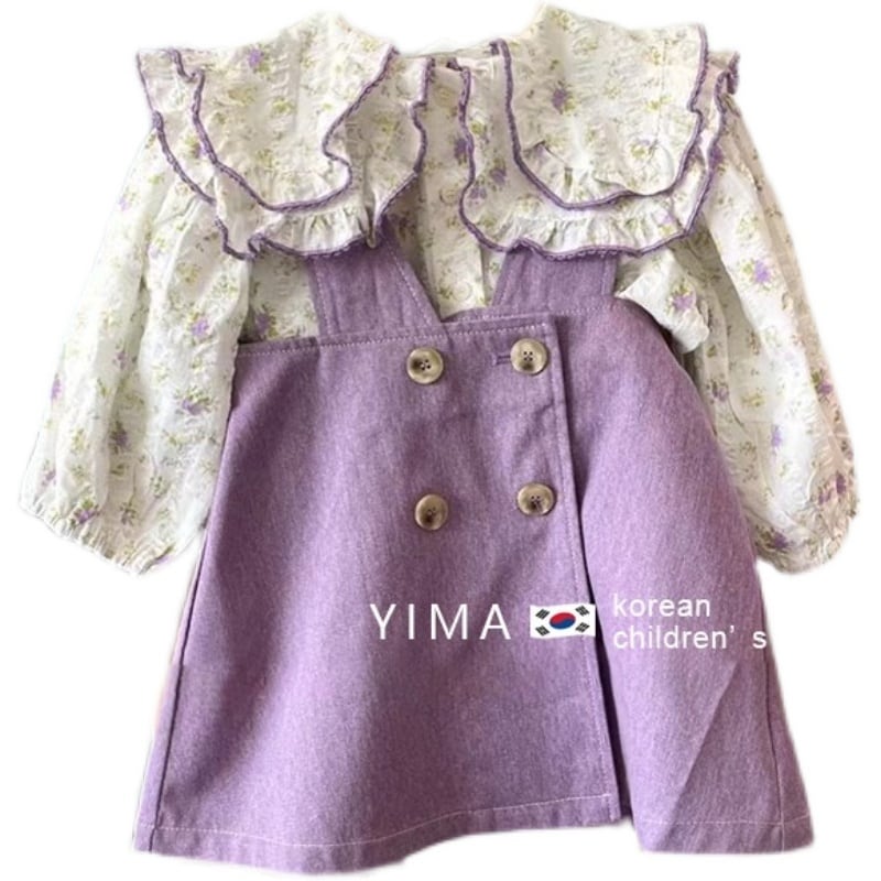 色:太郎紫サスペンダースカート,花柄シャツ