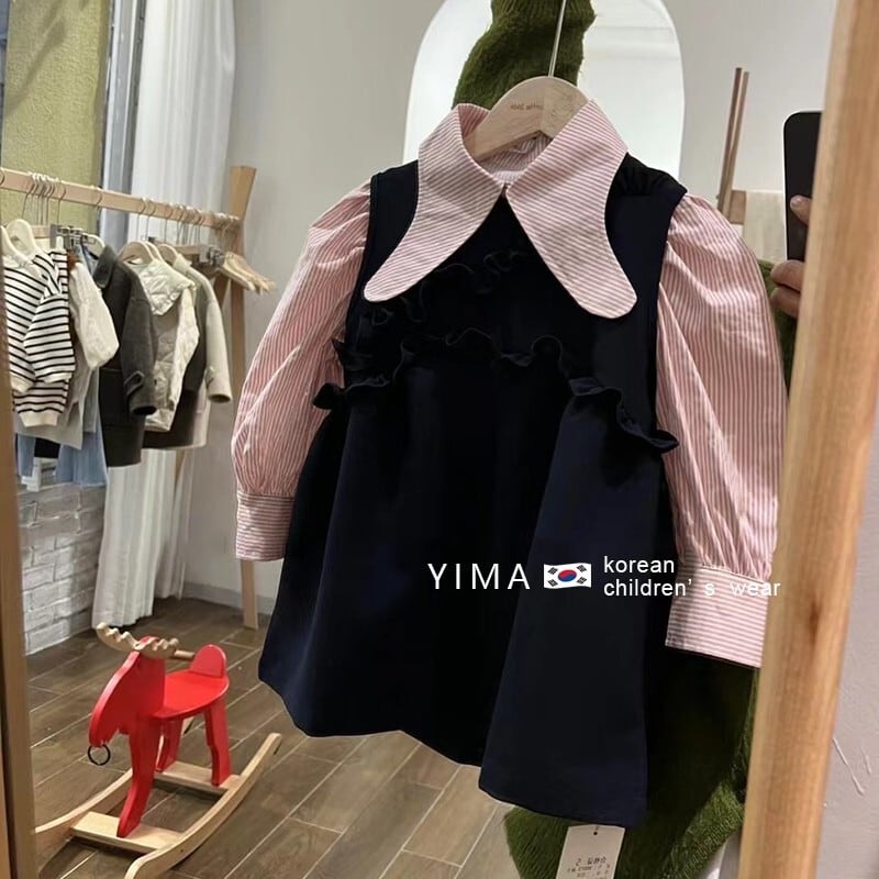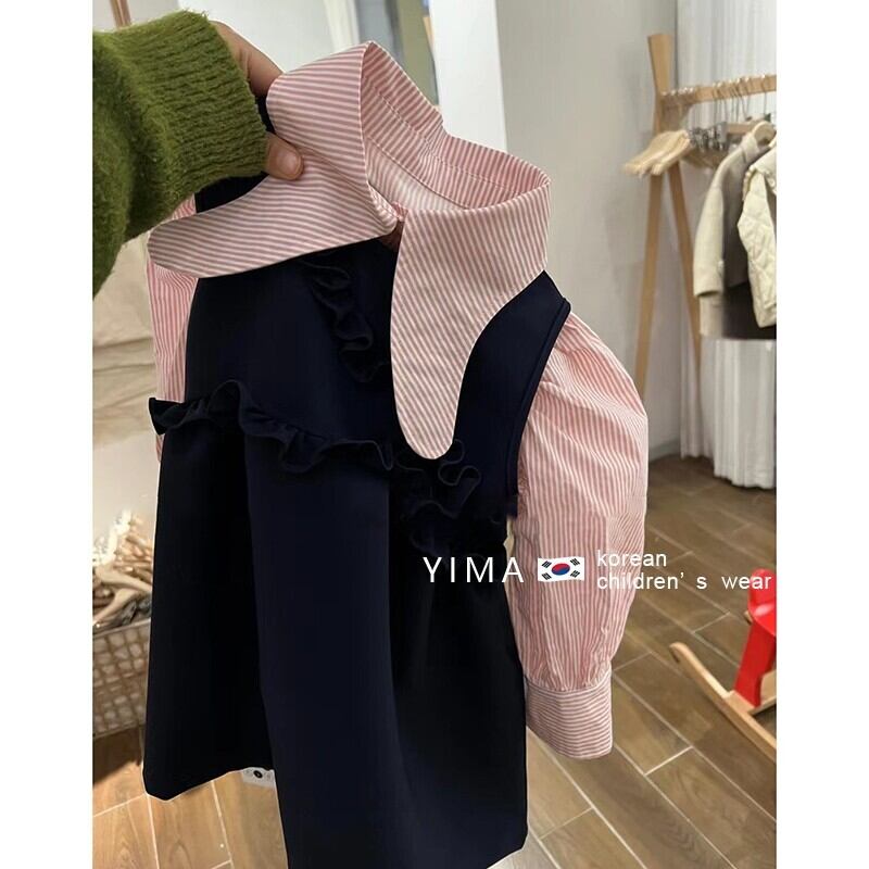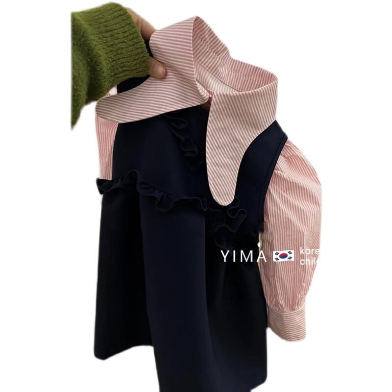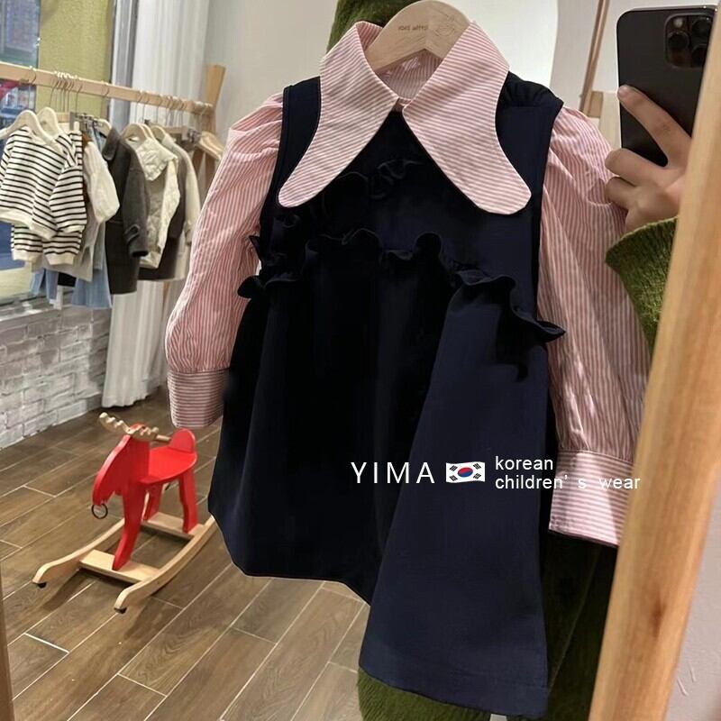 色:ピンクのシャツ,ネイビーブルーベストスカート