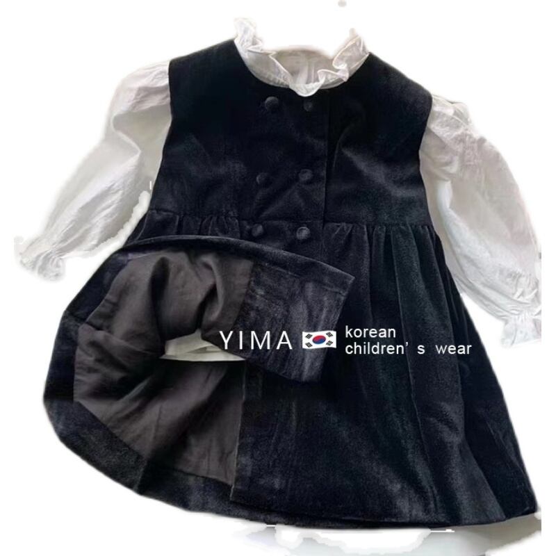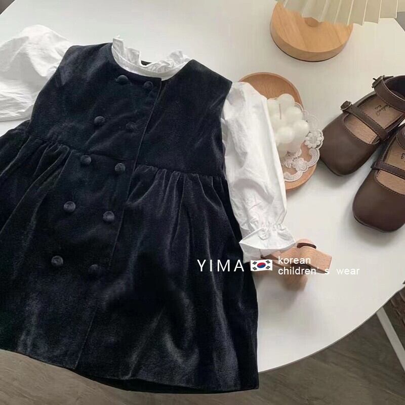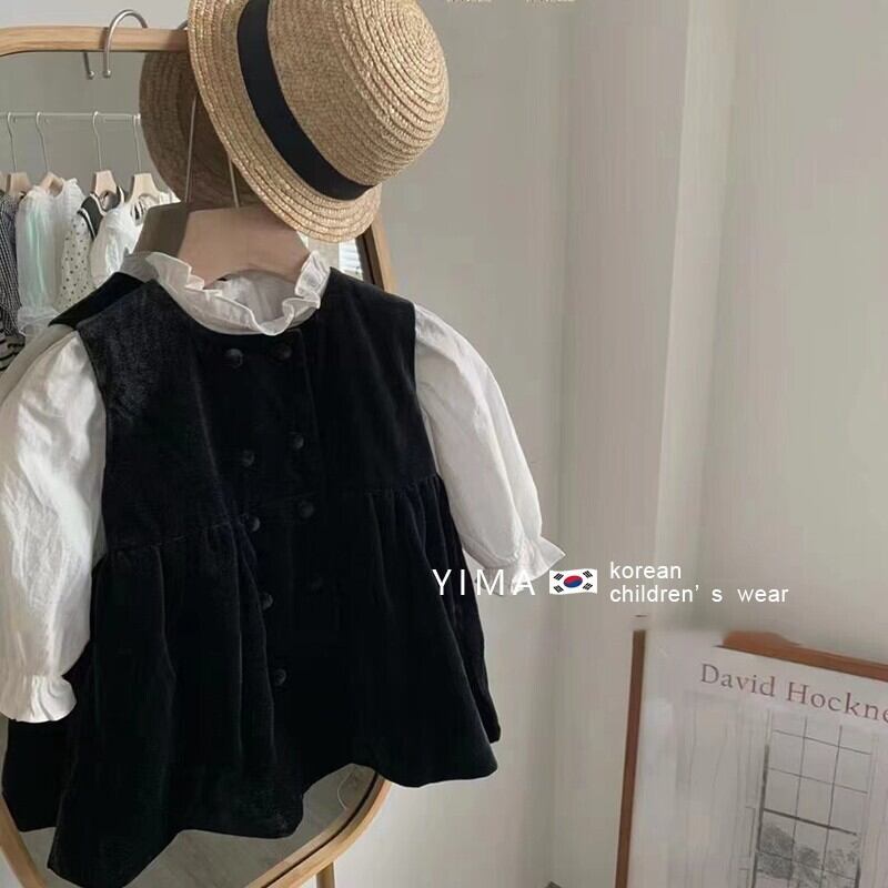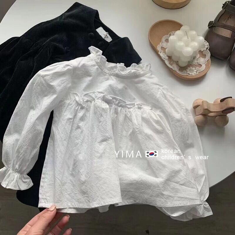 色:白長袖シャツ,黒のタンクスカート