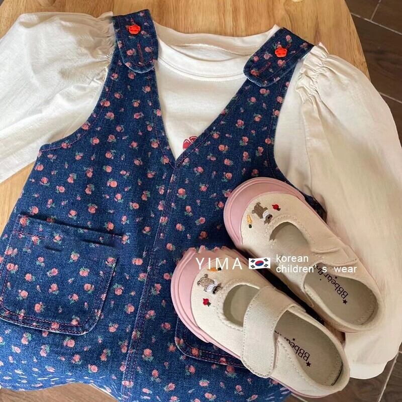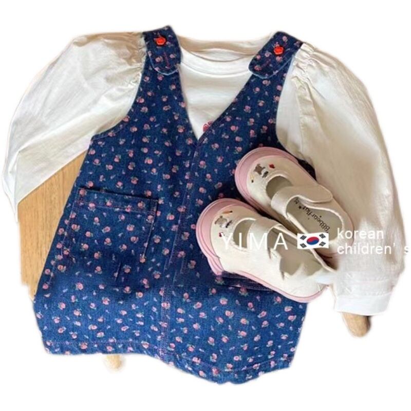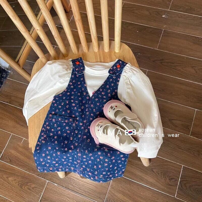 色:青いタンクスカート,ベージュの長袖トップ