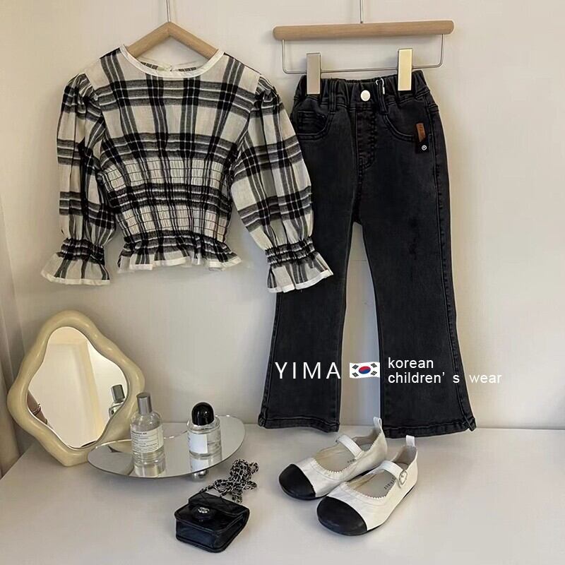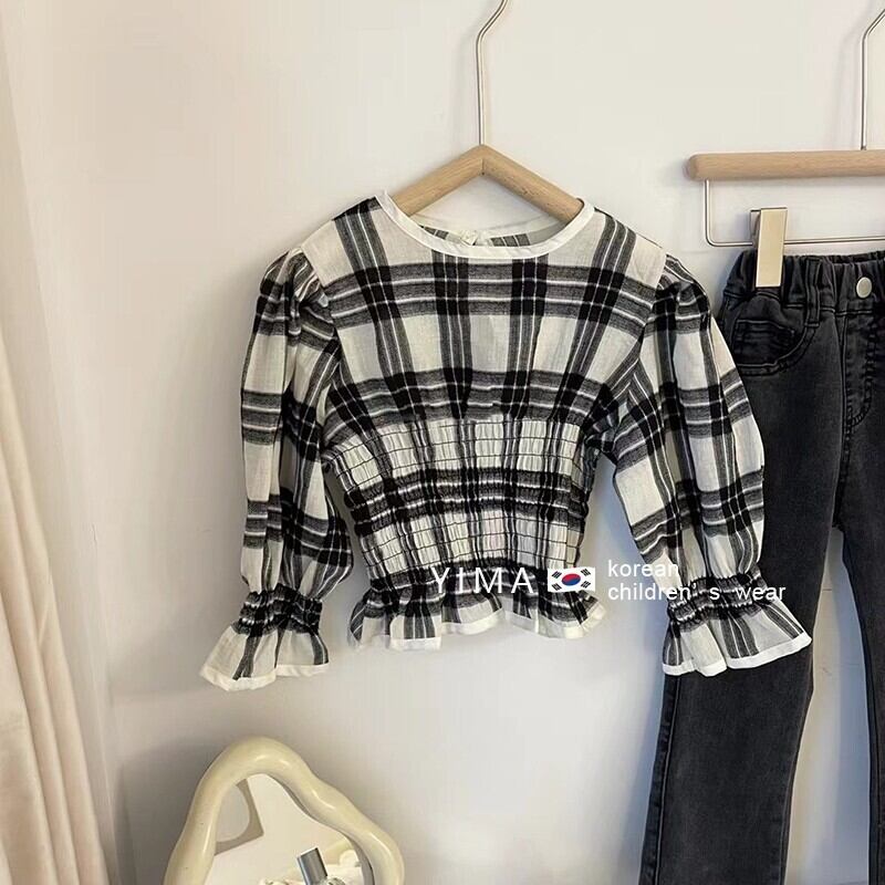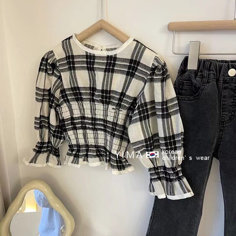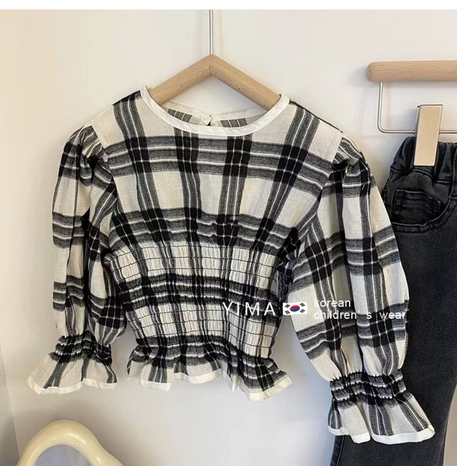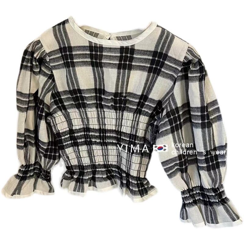 スプリングスタイル格子柄シャツ スタンダードウェストラウンドネックトップス レトロ 春物 Oネック 3/14 春夏 SS mi0970046445750 | Sagittarius By Constellation -KIDS&BABY-