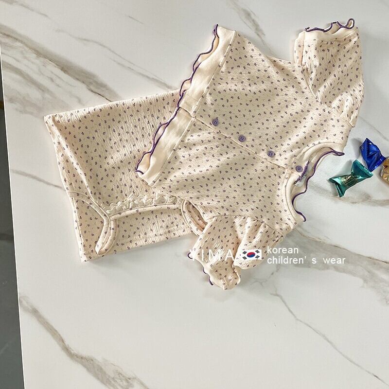 色:アプリコットフローラルツーピースセット
