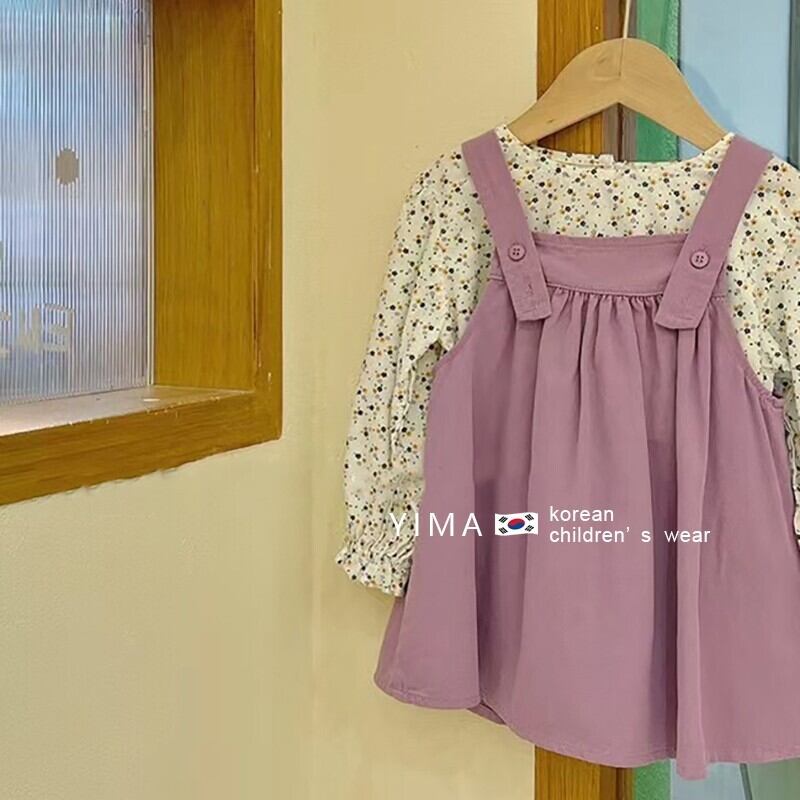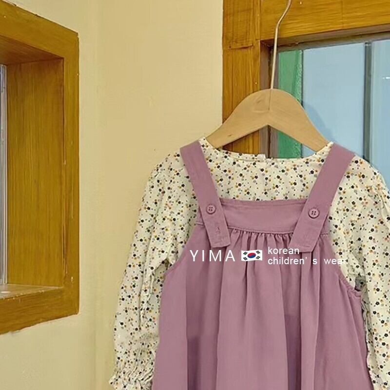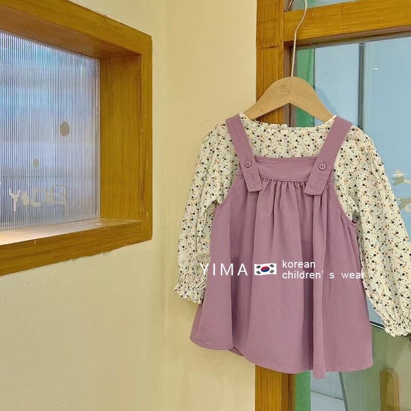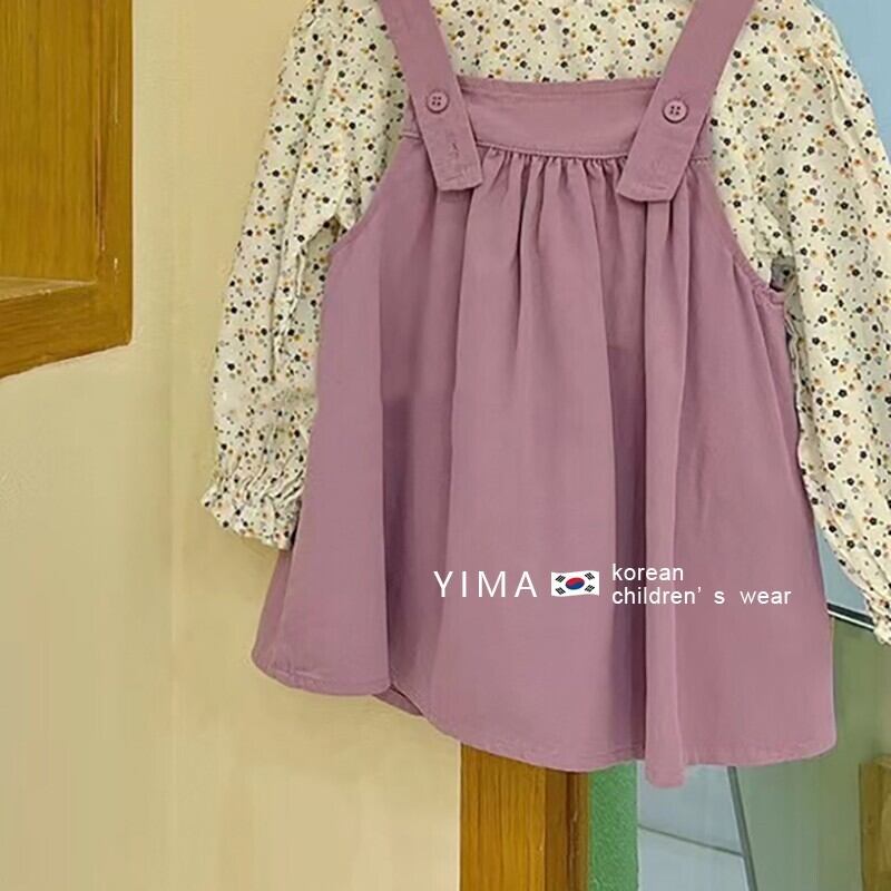 色:ピンクパープルサスペンダースカート,ベージュフローラルシャツ