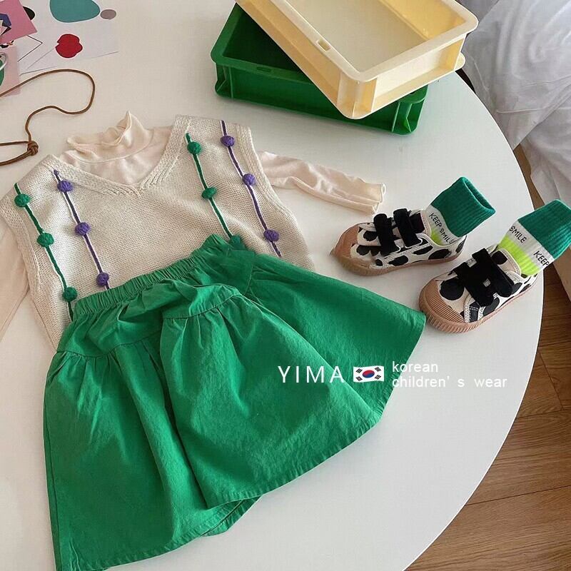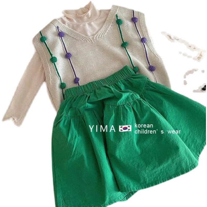 色:GRグリーンスカート,ベージュニットタンクトップ,アプリコットボトムスシャツ