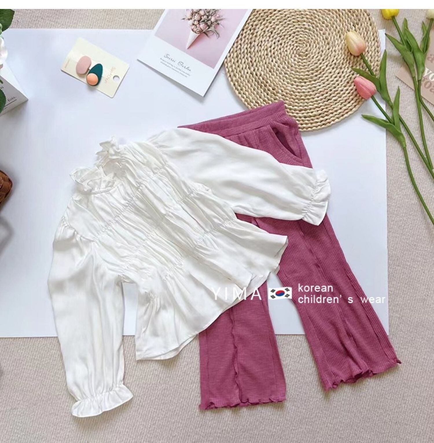 色:白のシャツ,小豆パンツ