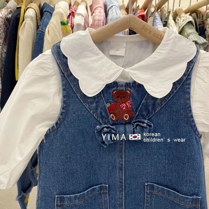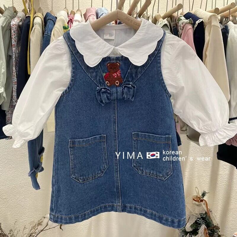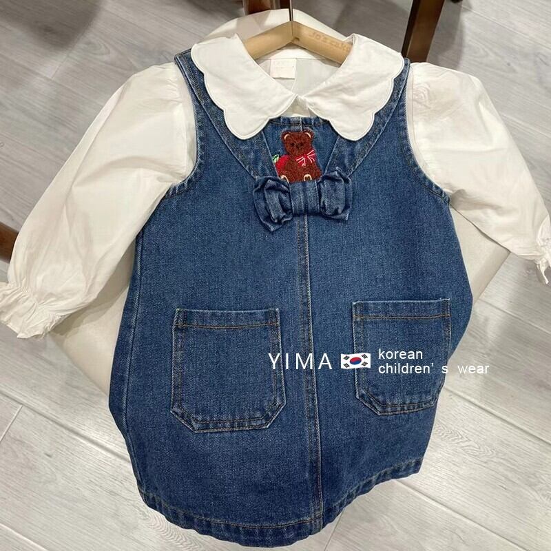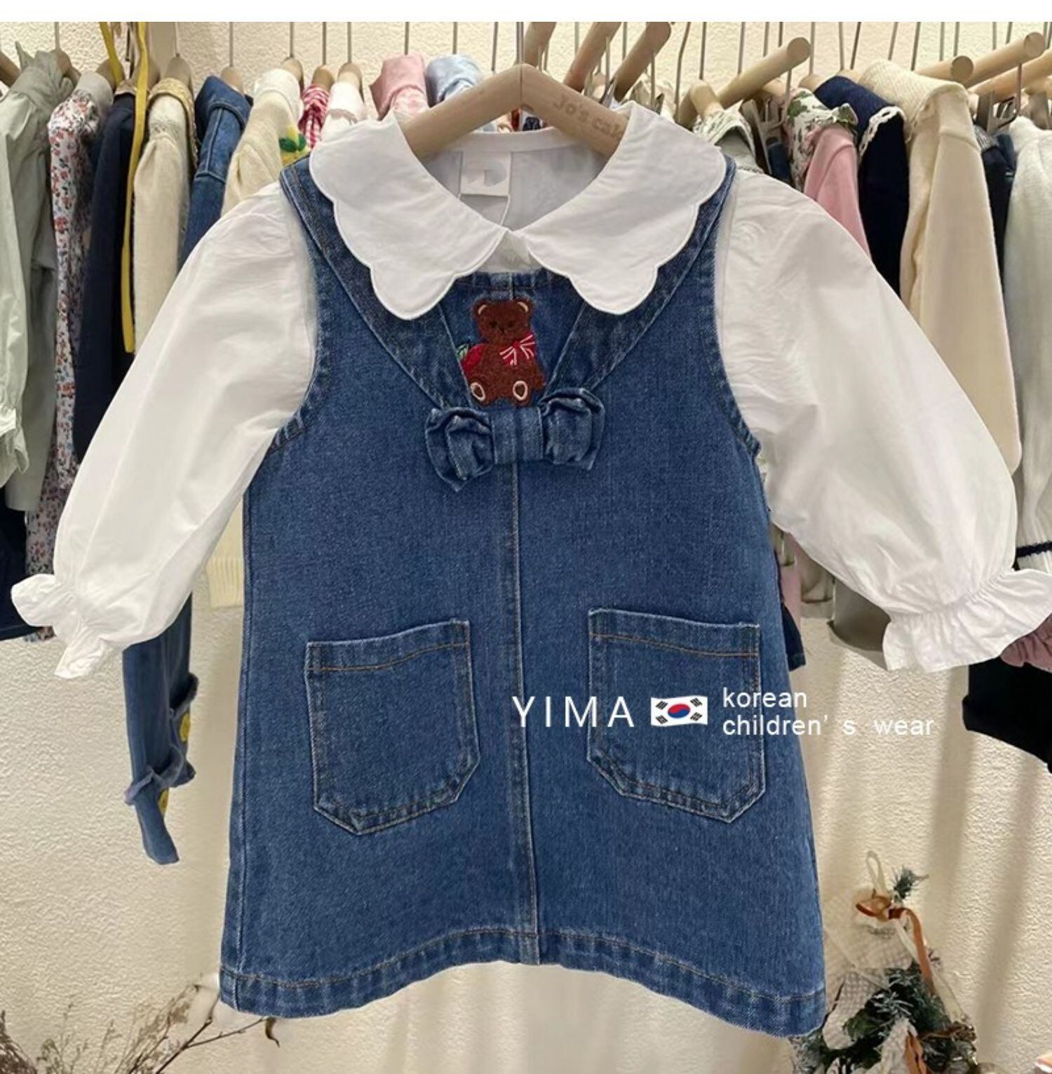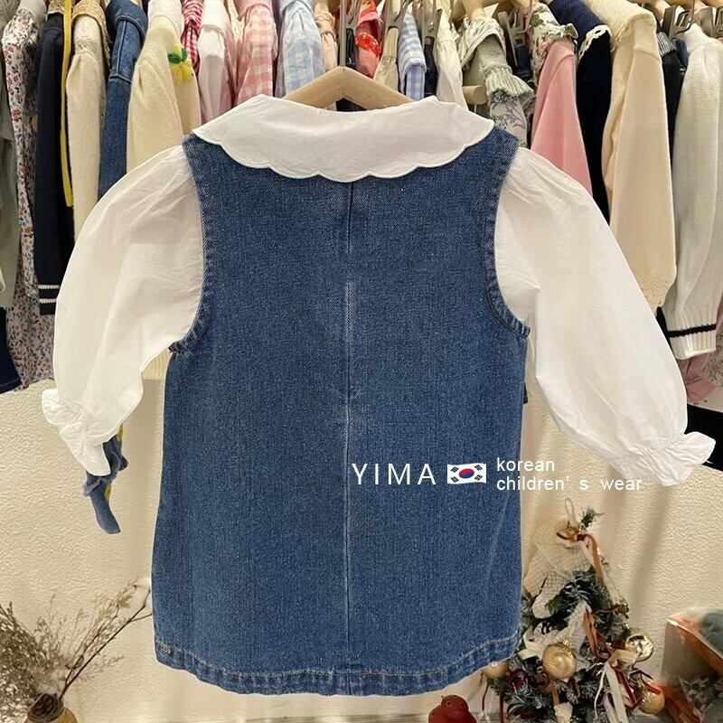 色:ブルーデニムタンクトップ,白長袖シャツ