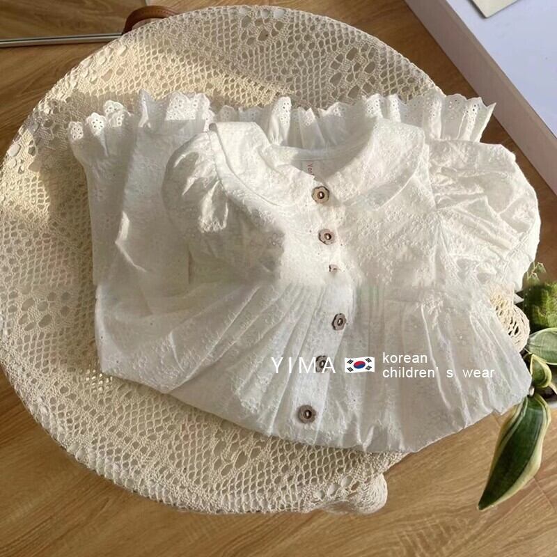 色:ホワイトパフスリーブシャツドレス