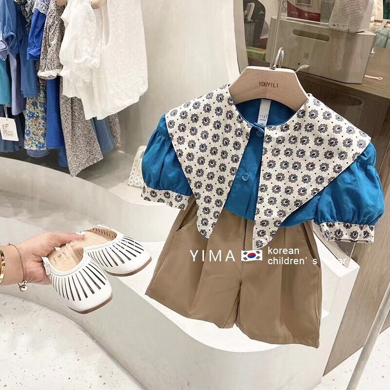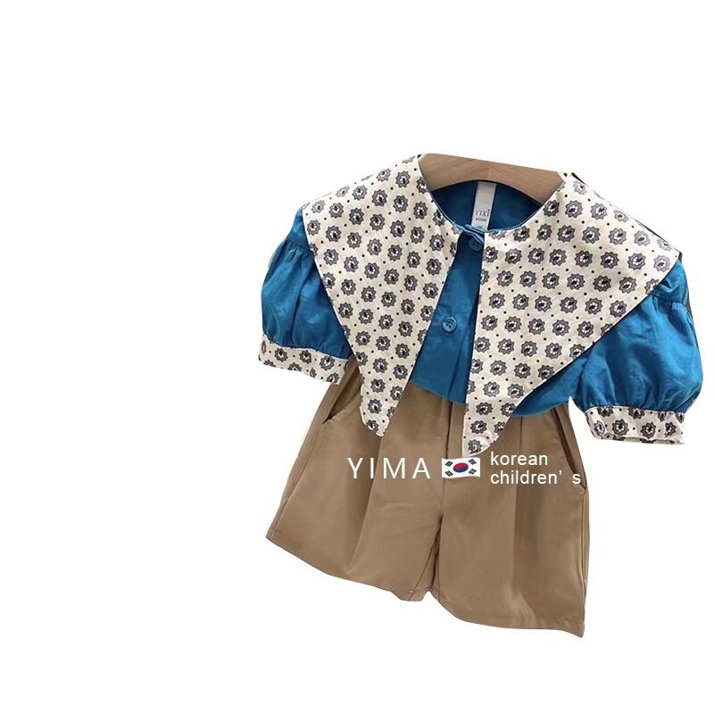 色:ブルートップ+カーキショーツセット