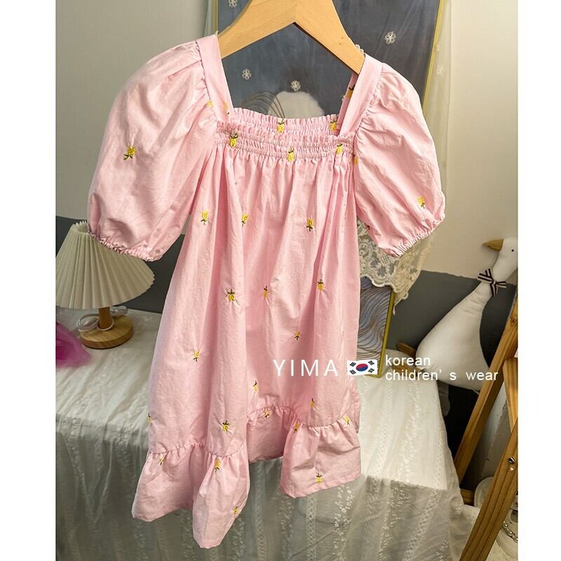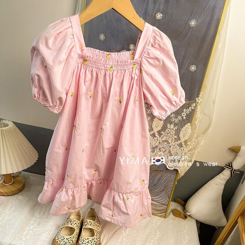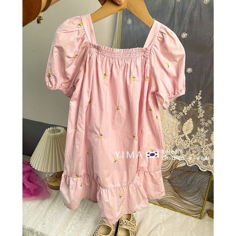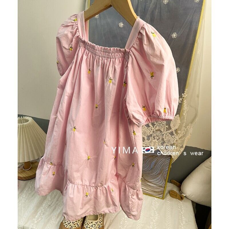 スプリングスリーブドレス スカート ピンク レッド コットン 刺繍 春物 スクウェア 3/14 春夏 SS mi0995145635768 | Sagittarius By Constellation -KIDS&BABY-