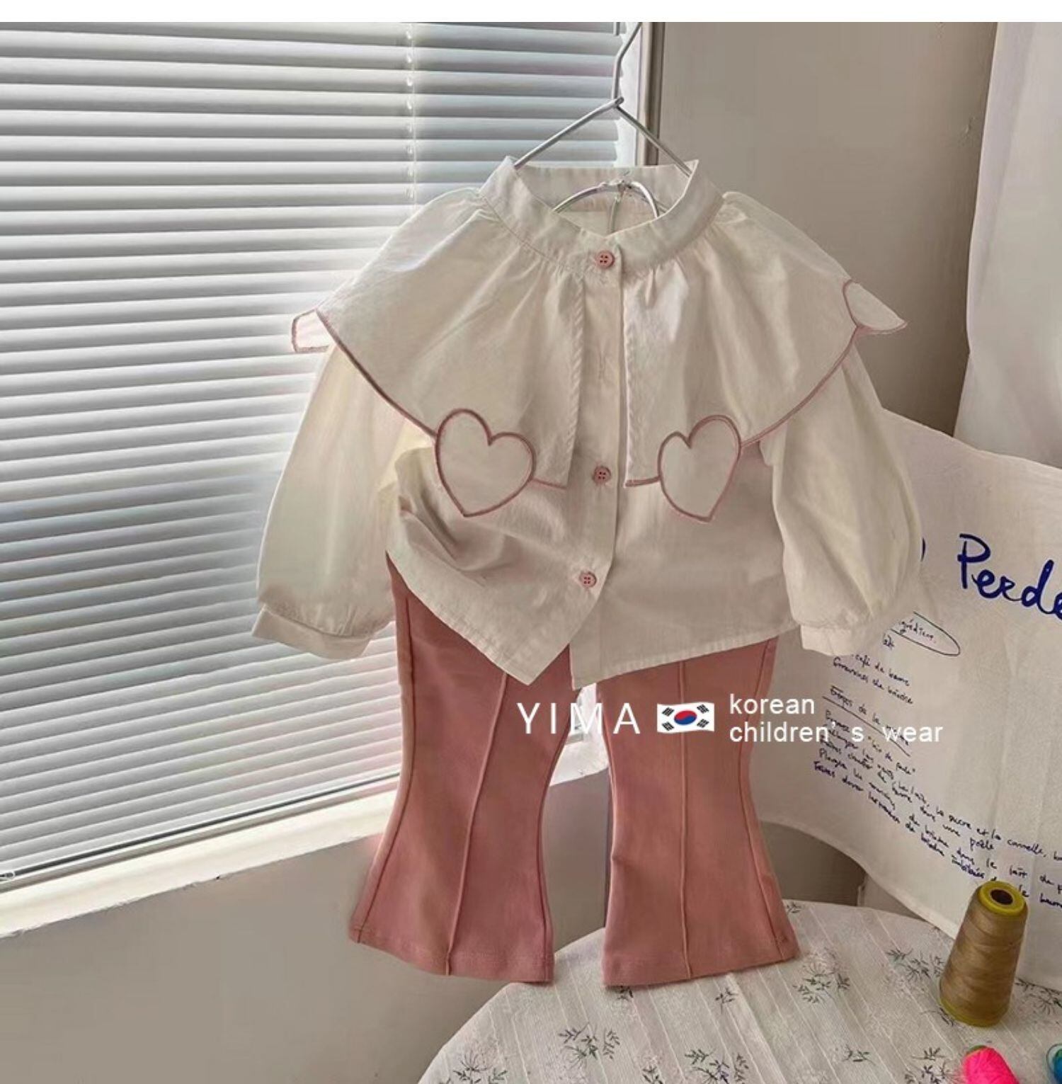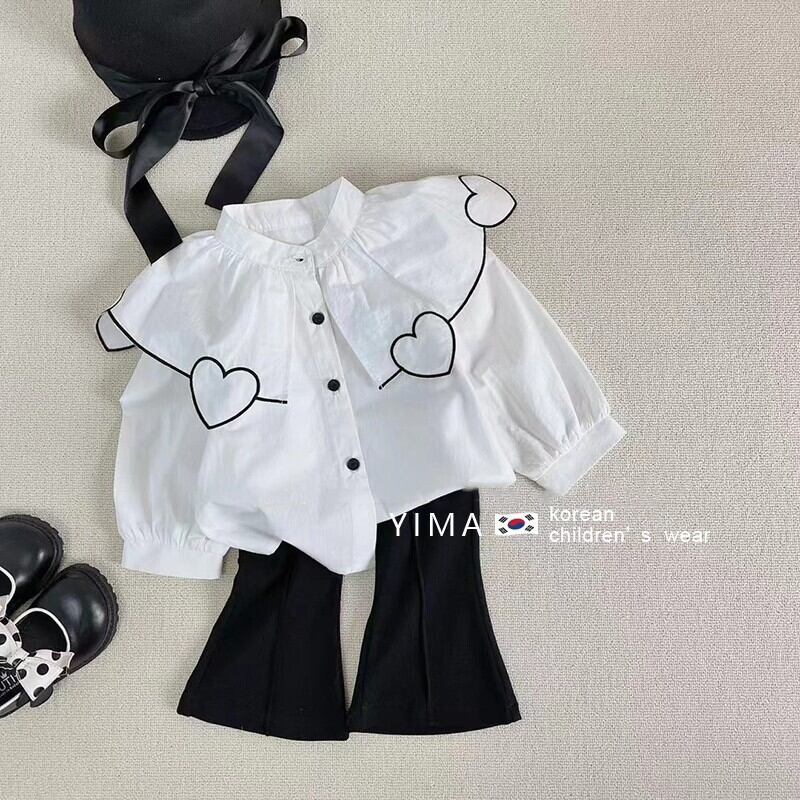 色:ホワイトピンクハートシャツ,ホワイトブラックハートシャツ,ピンクのパンツ,黒いズボン