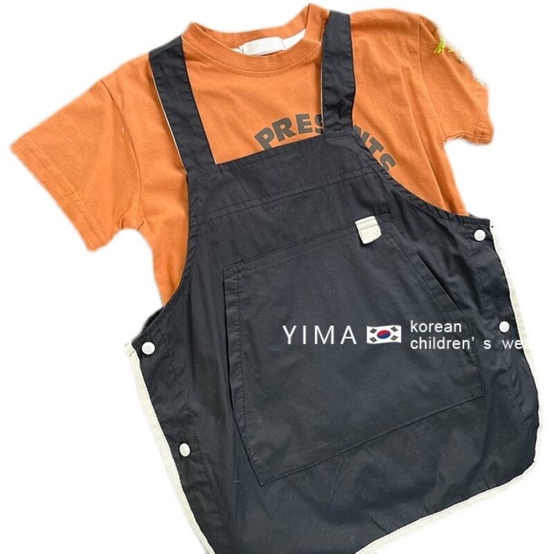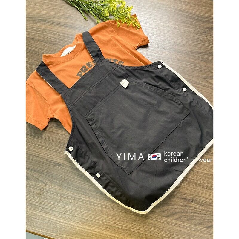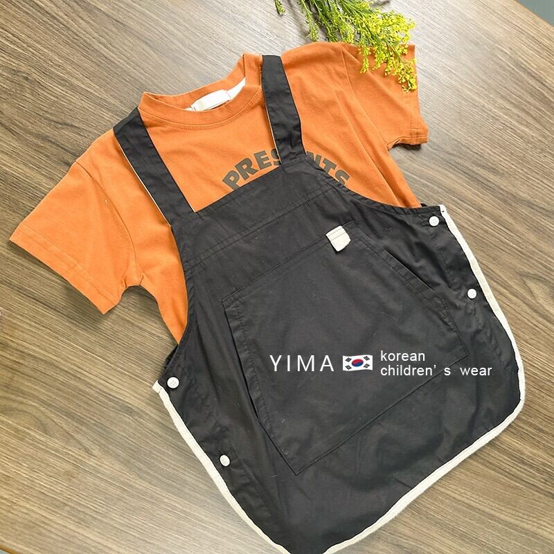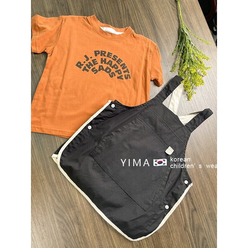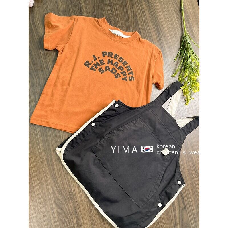 色:オレンジ半袖トップ,ブラックストラップドレス