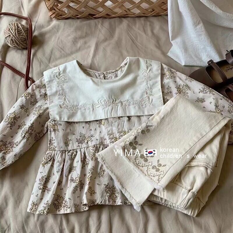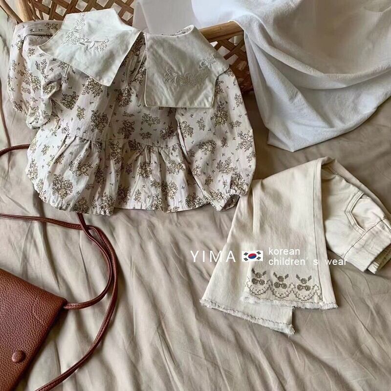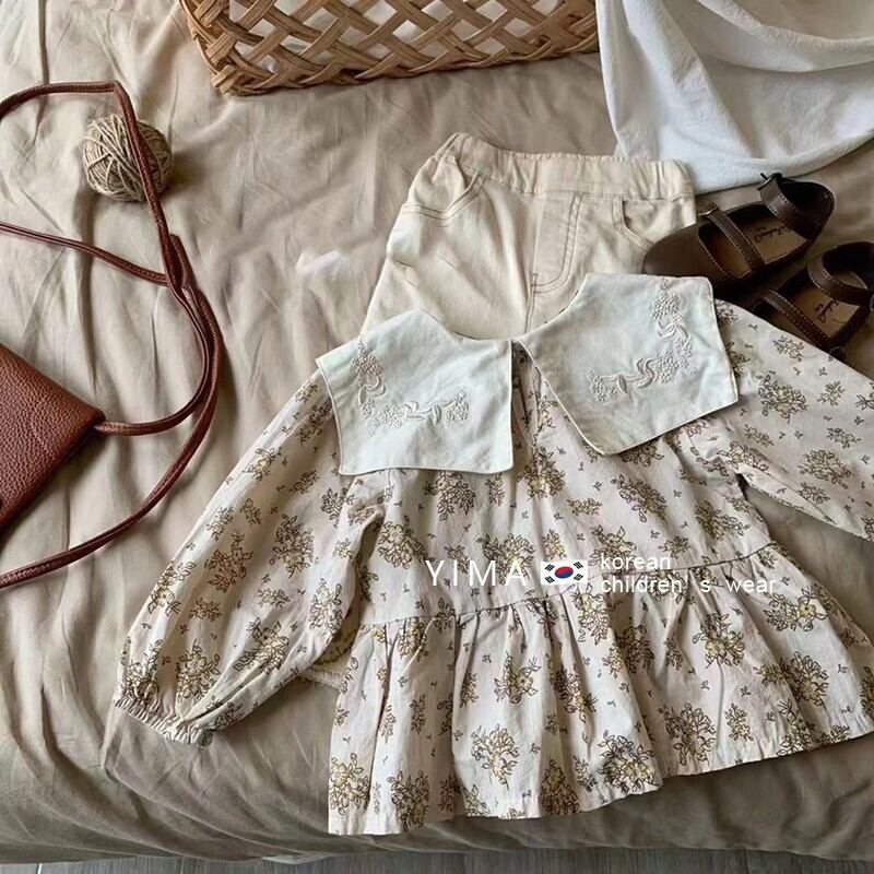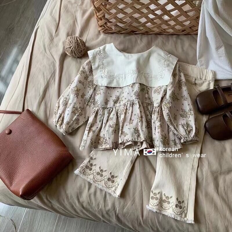 色:ベージュフローラルシャツ,ベージュパンツ