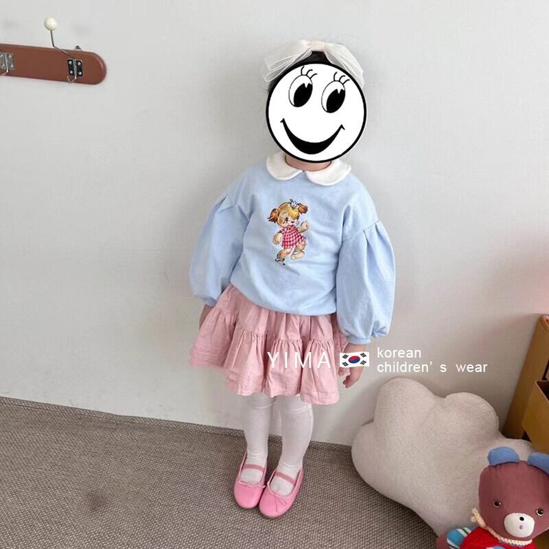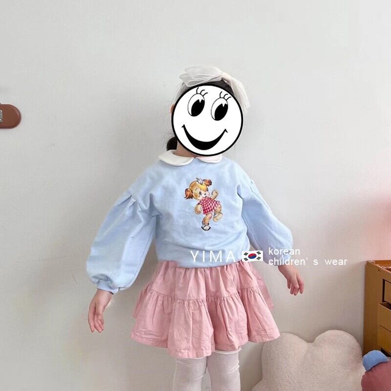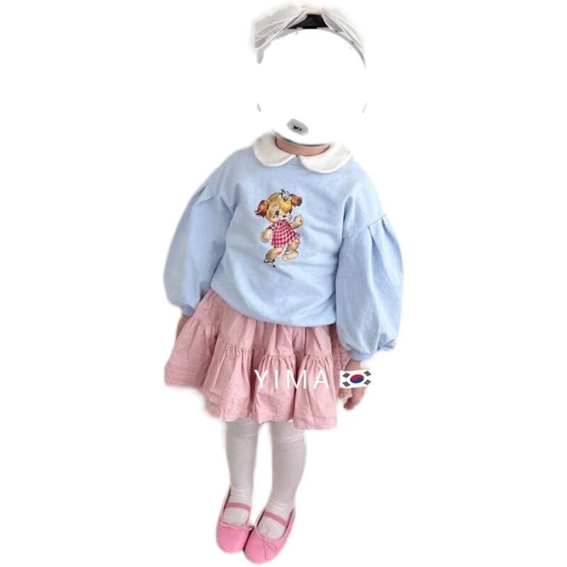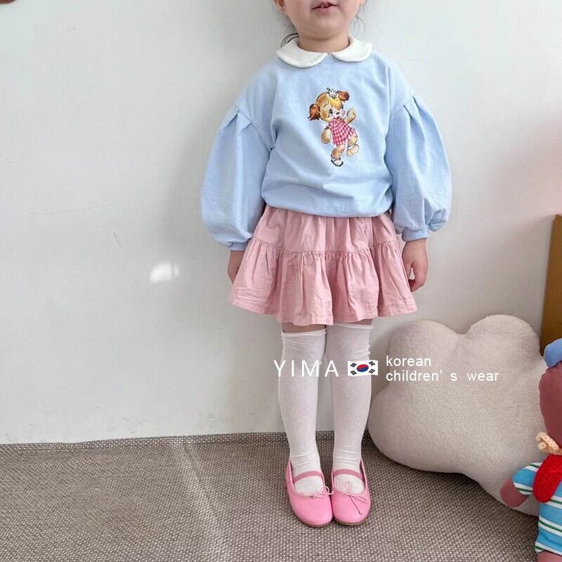 色:スカイブルーのセーター,ピンクのスカート,ピンクの漫画トップ