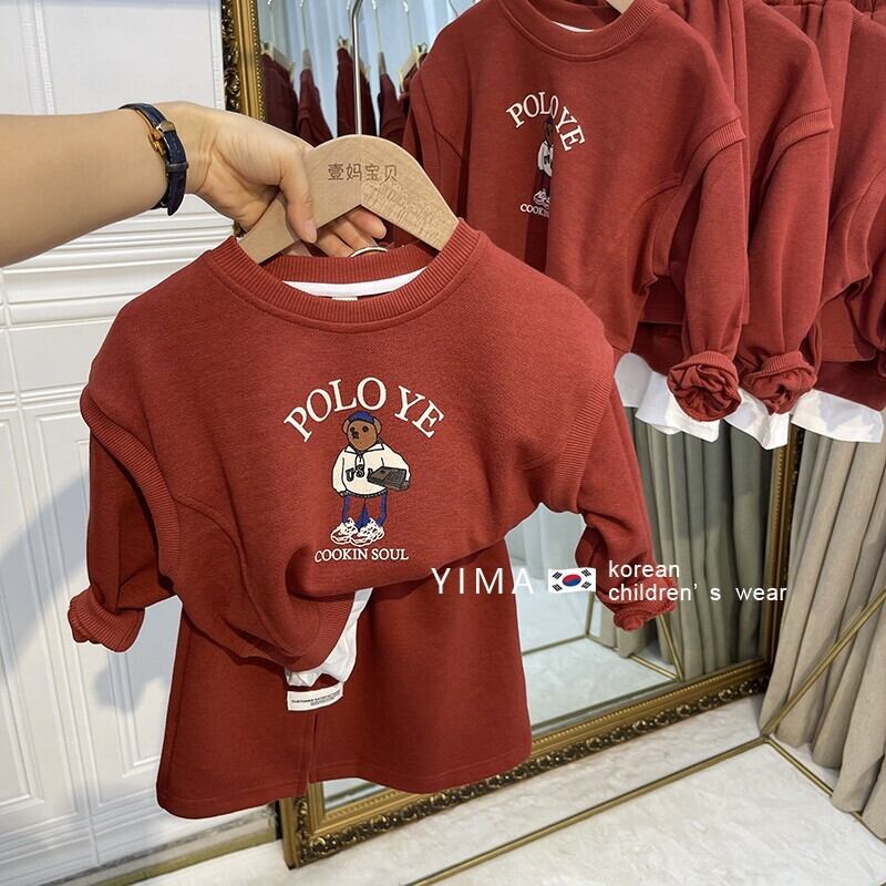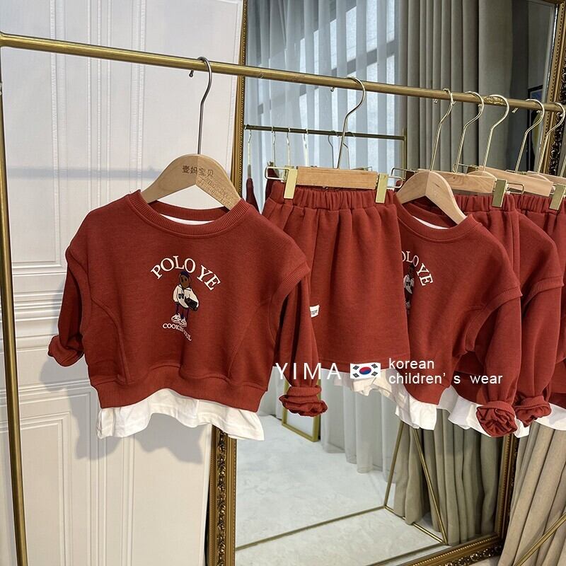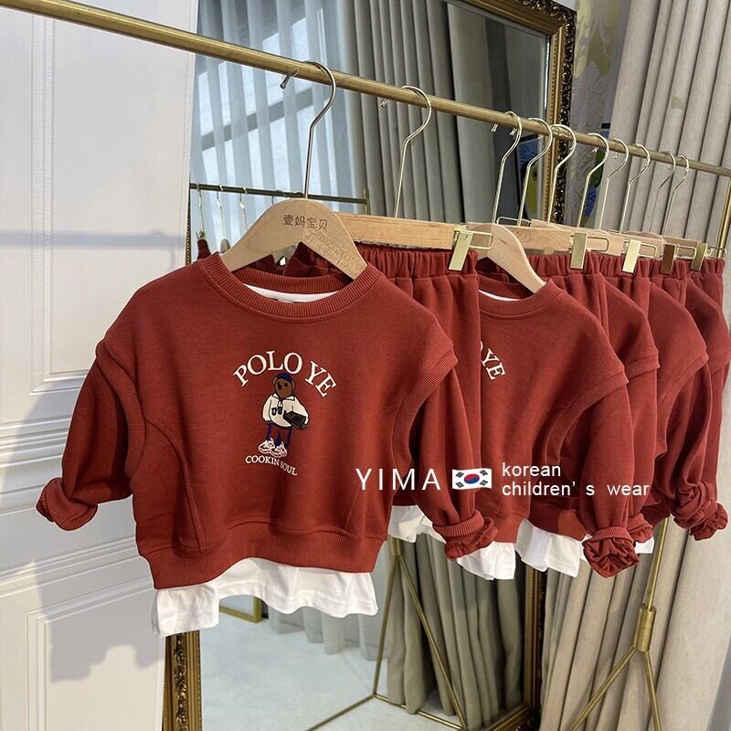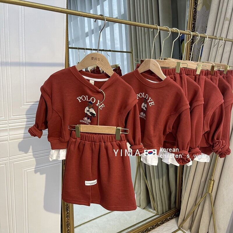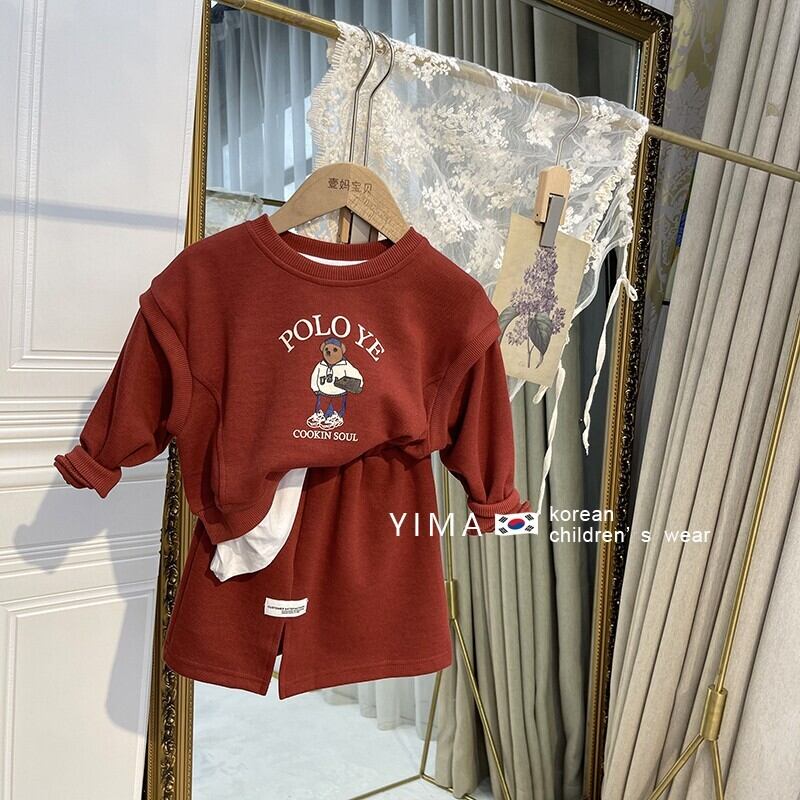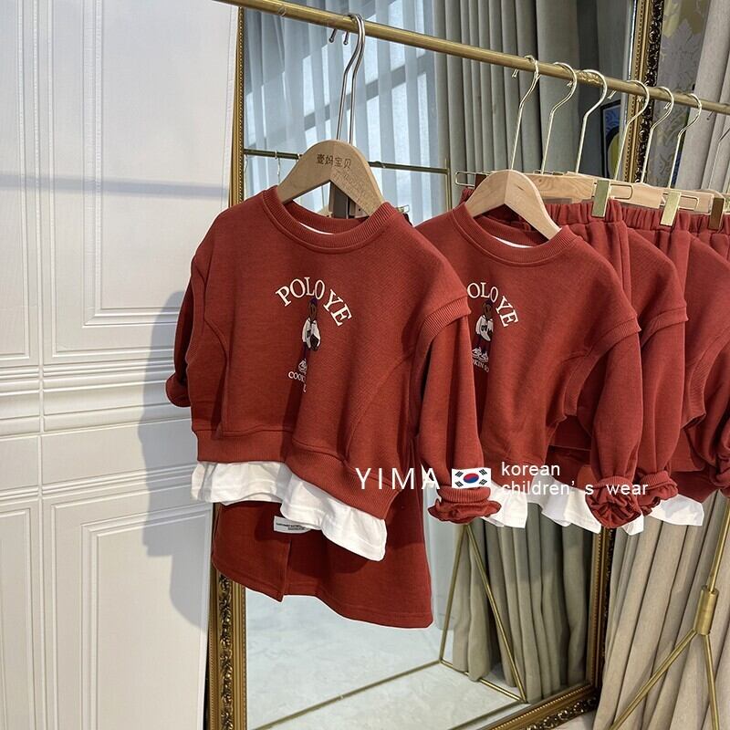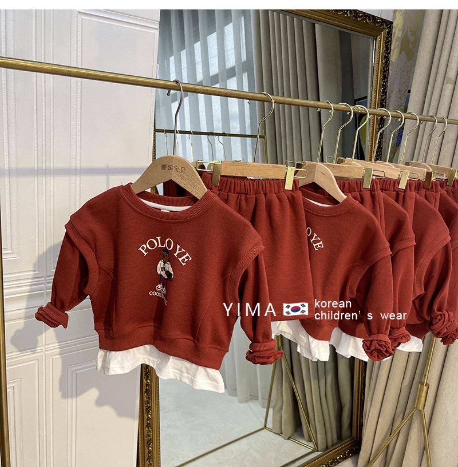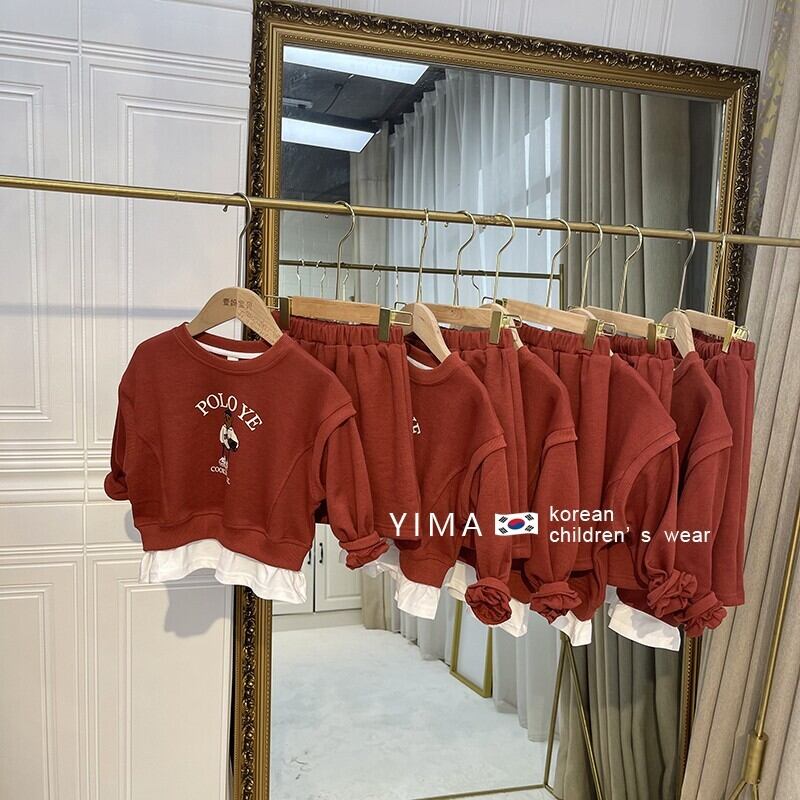 色:レンガの赤いセーターセット