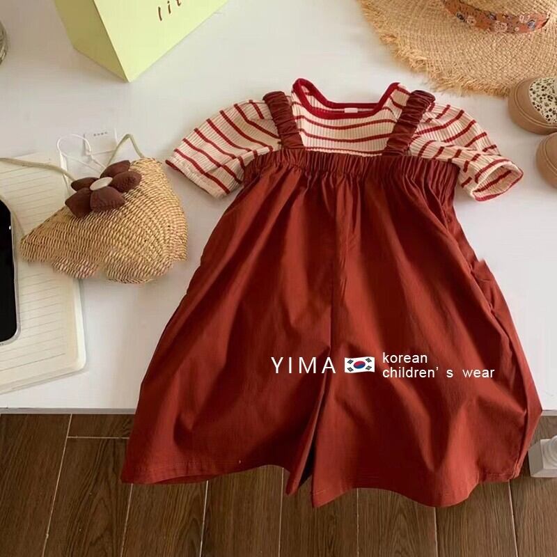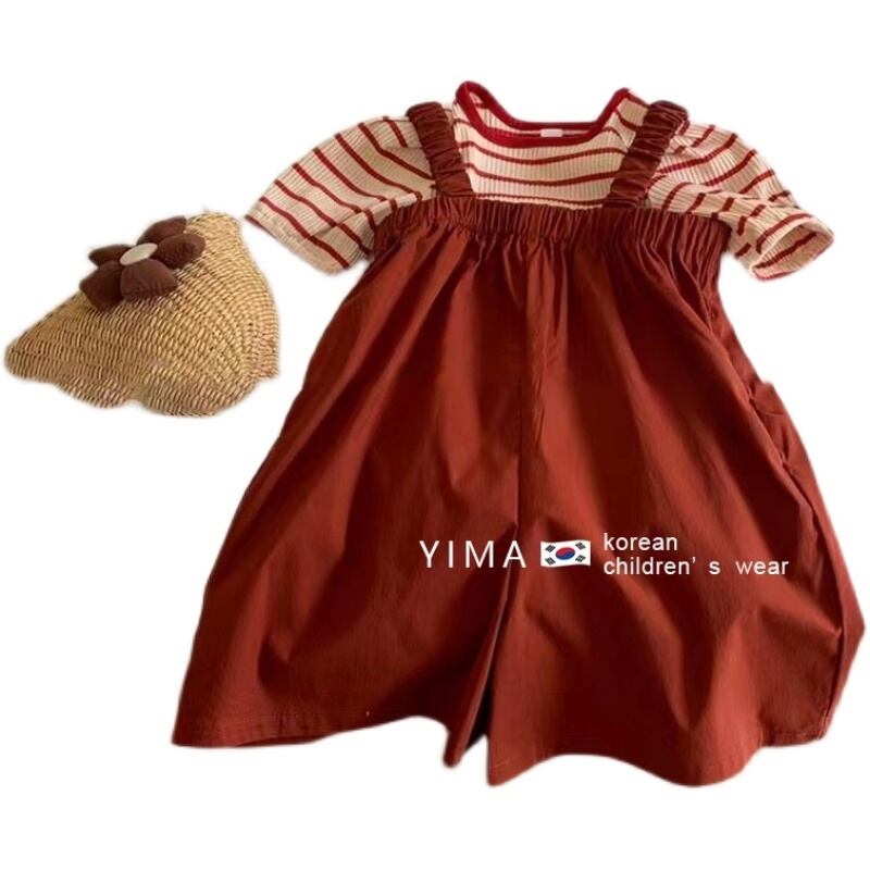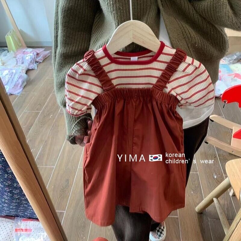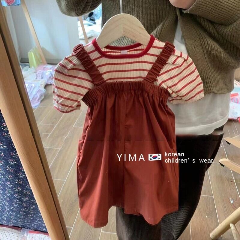 色:ストライプトップ,赤いドレス